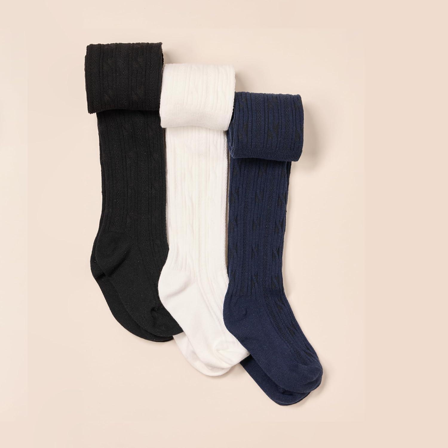 Amazon Essentials Girls’ Cable Knit Tight, Pack of 3(White/Black/Navy)
