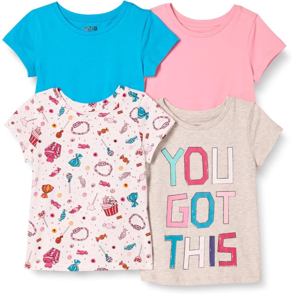 Amazon Essentials Girls Short-Sleeve T-Shirts(Blue/Grey/Pink/Candy)