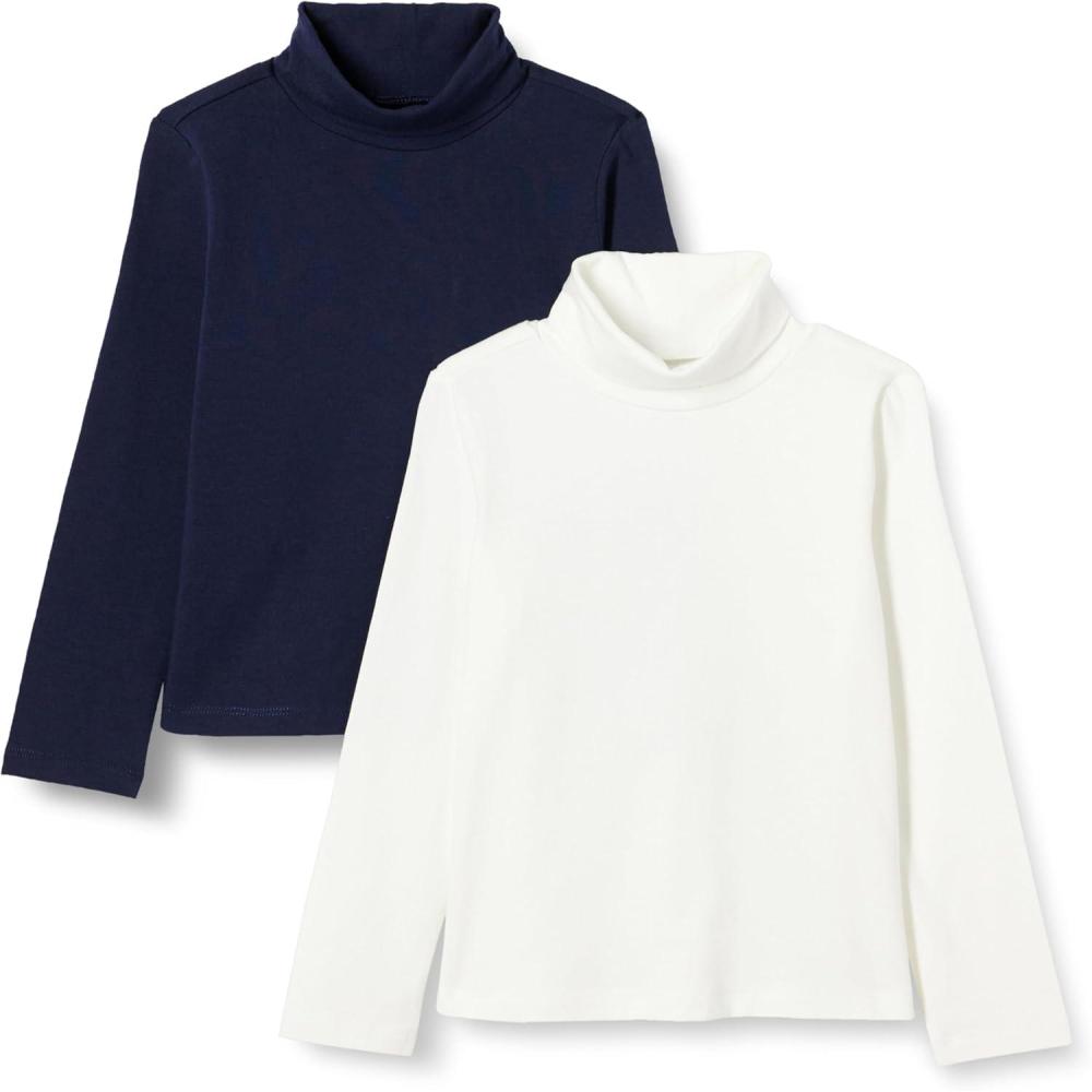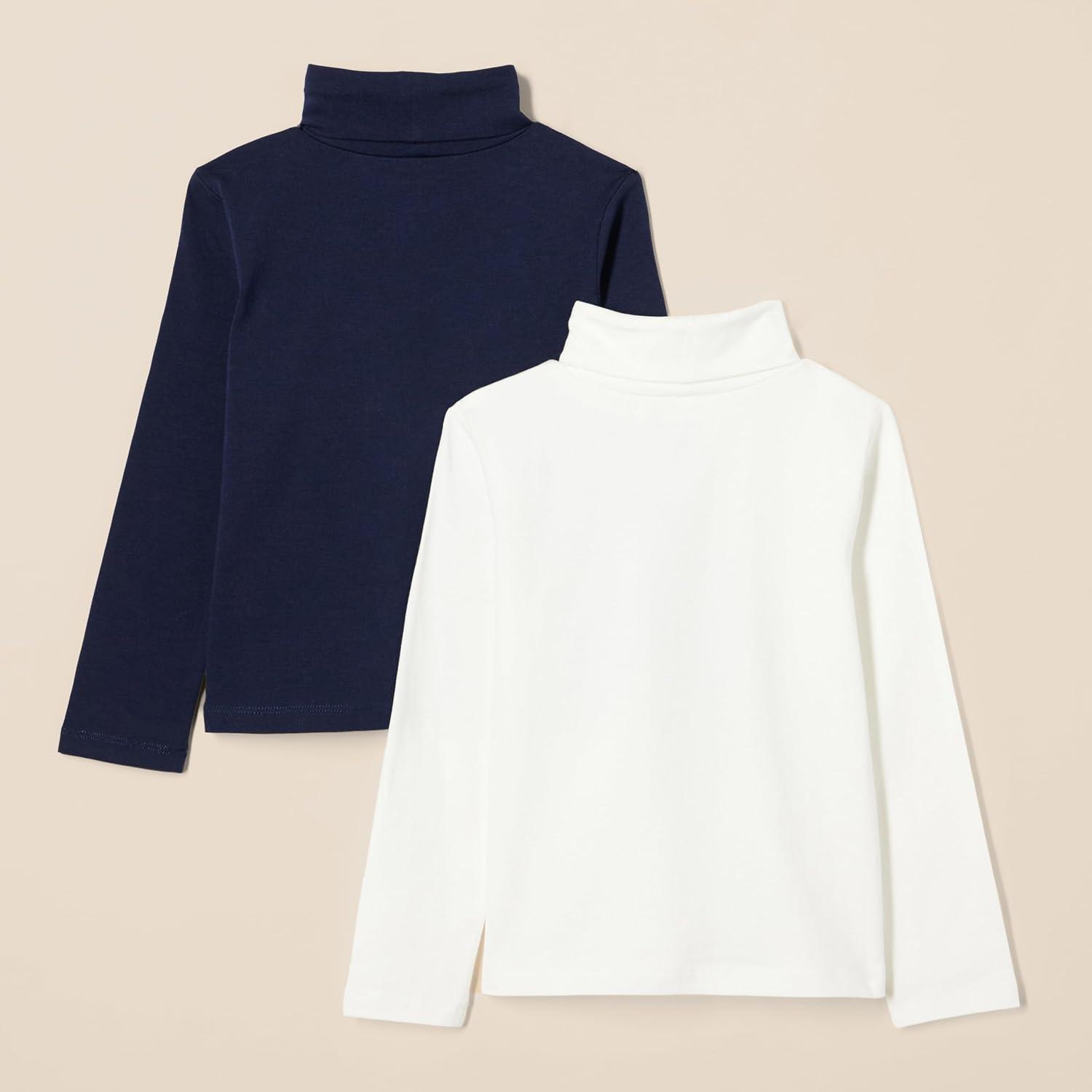Amazon Essentials Girls’ Turtleneck T-Shirt, Pack of 2(Ivory/Navy)