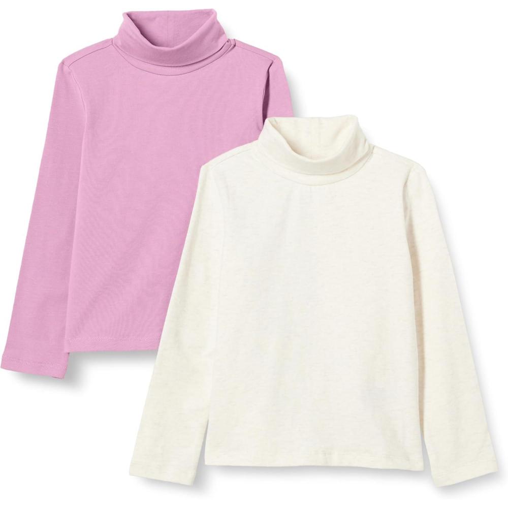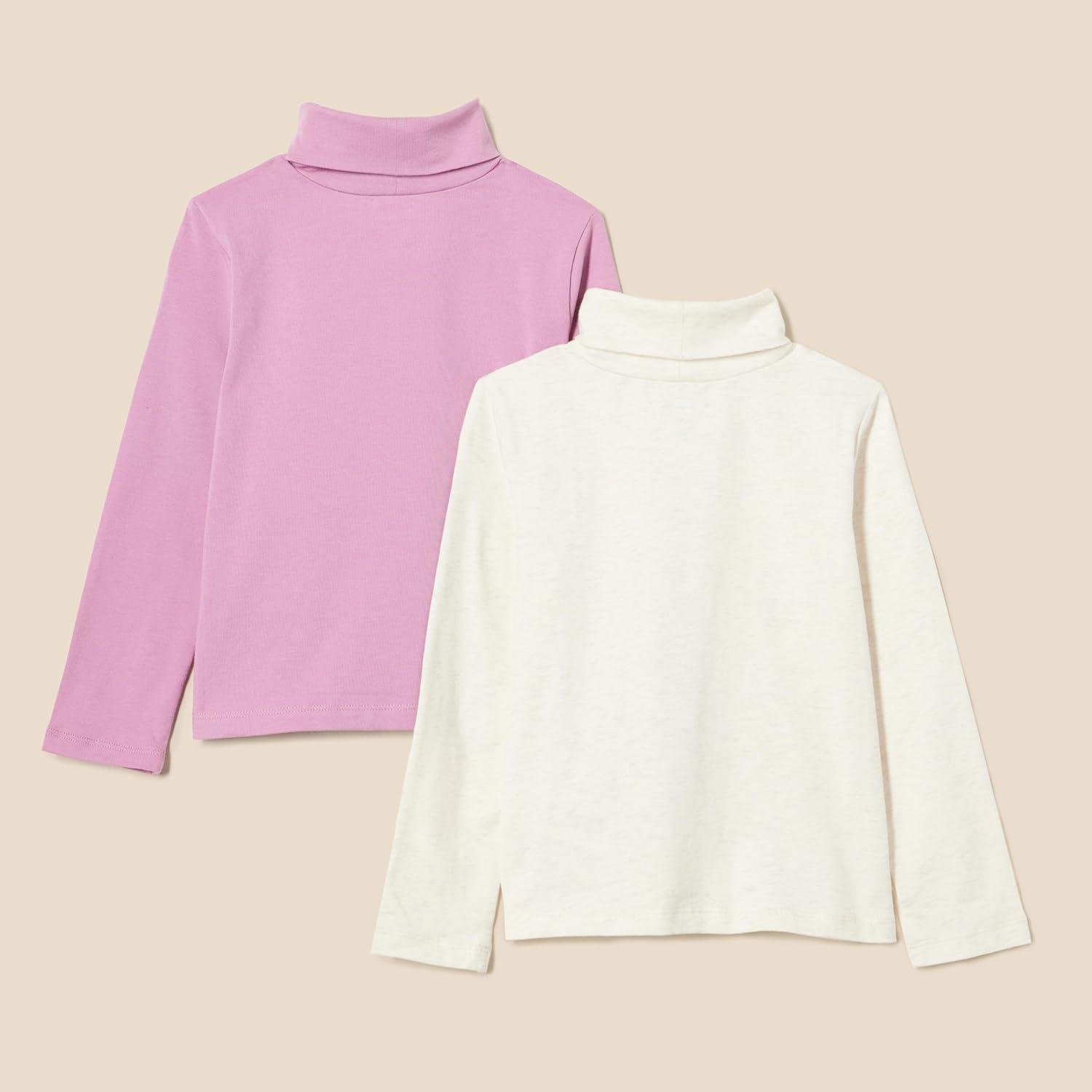 Amazon Essentials Girls’ Turtleneck T-Shirt, Pack of 2(Oatmeal Heather/Mauve)