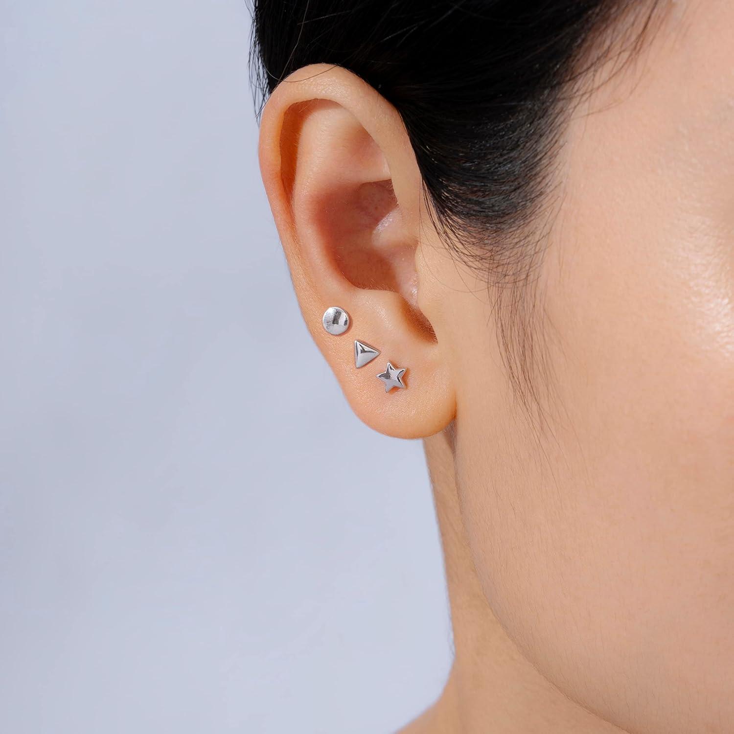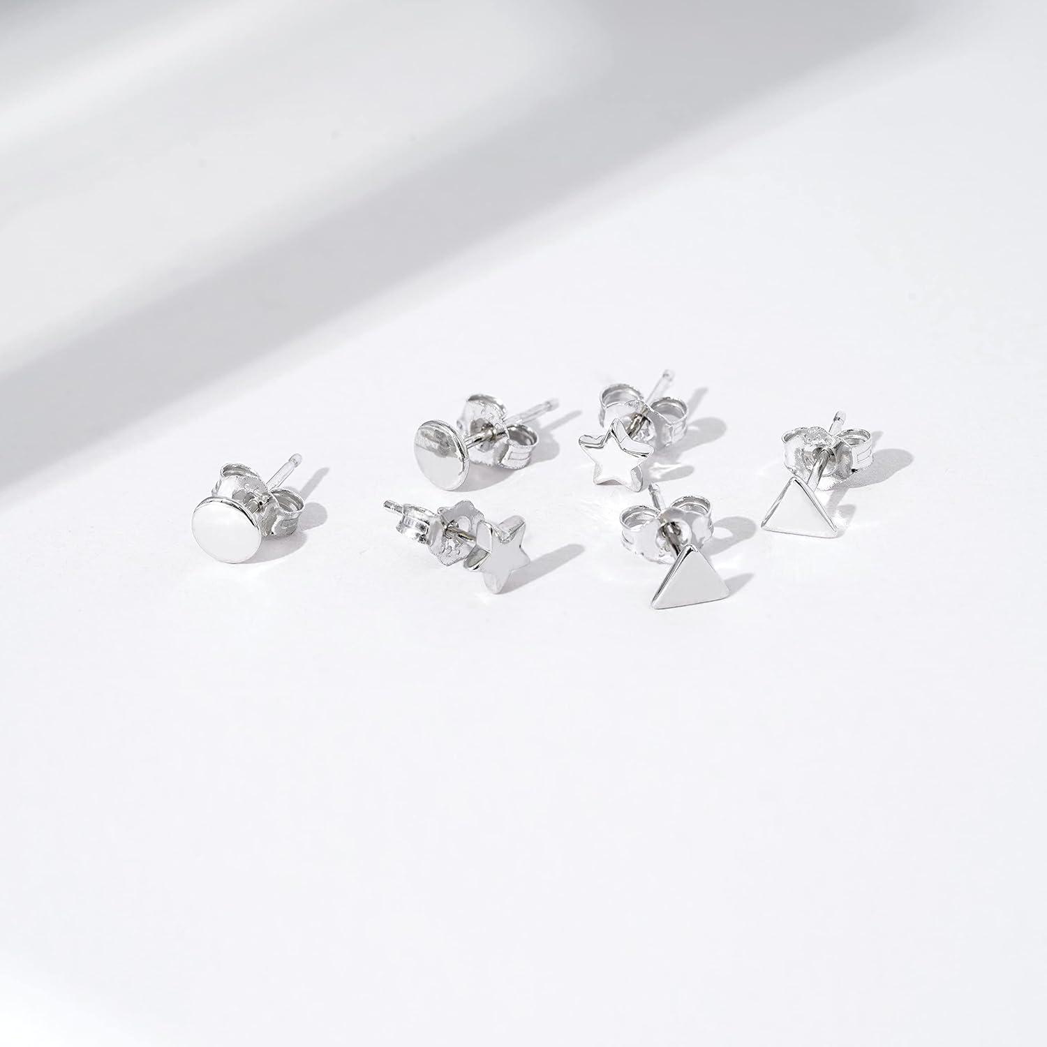 Amazon Essentials Gold Plated Sterling Silver Stud Earrings(Silver)