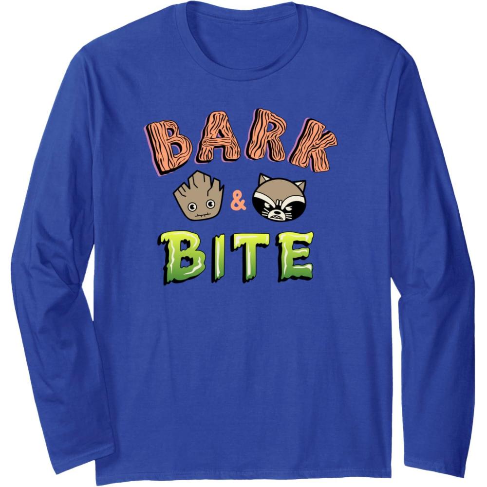 Amazon Essentials Guardians of the Galaxy Groot and Rocket Bark and Bite Long Sleeve T-Shirt(Royal Blue)
