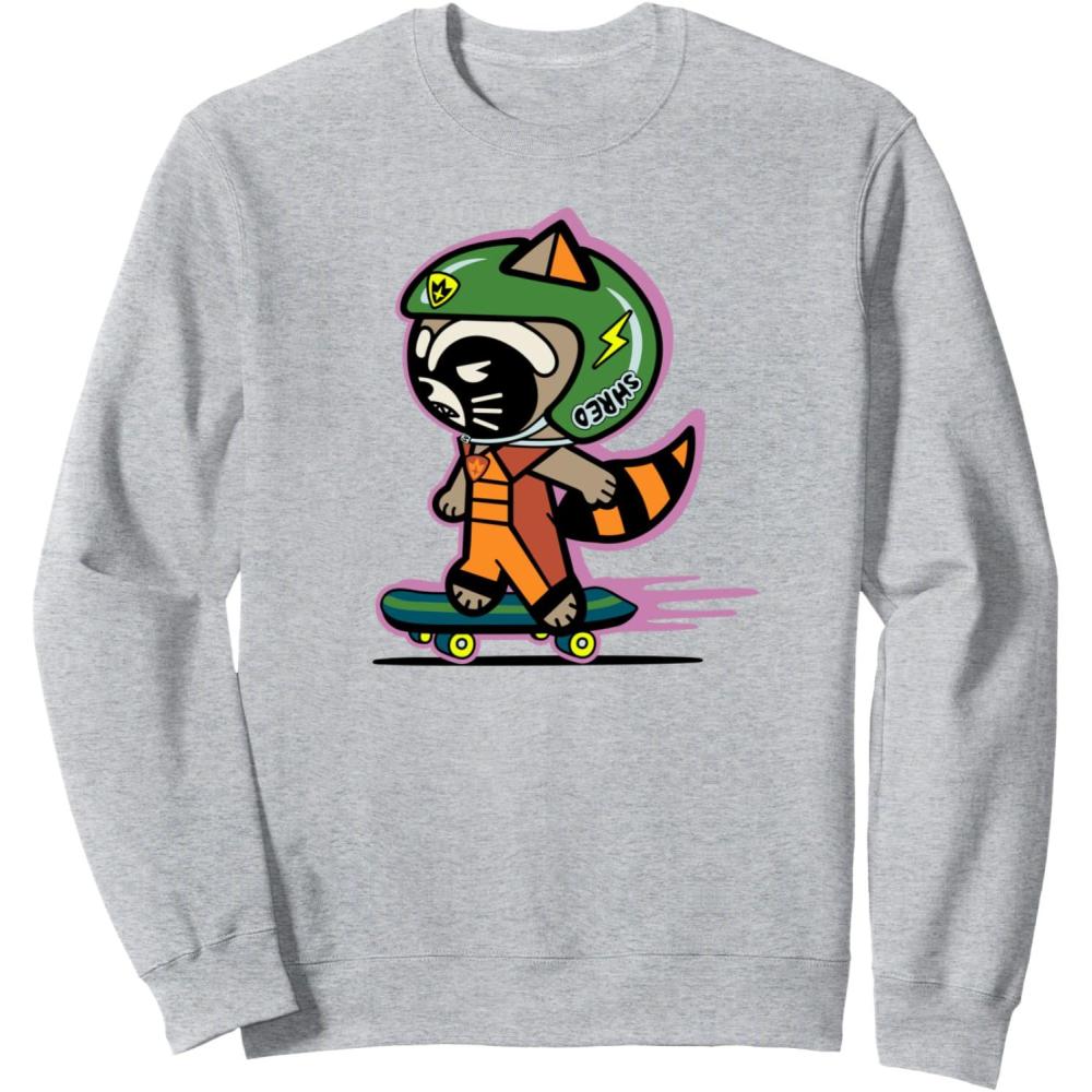 Amazon Essentials Guardians of the Galaxy Skateboarding Rocket Sweatshirt(Heather Grey)