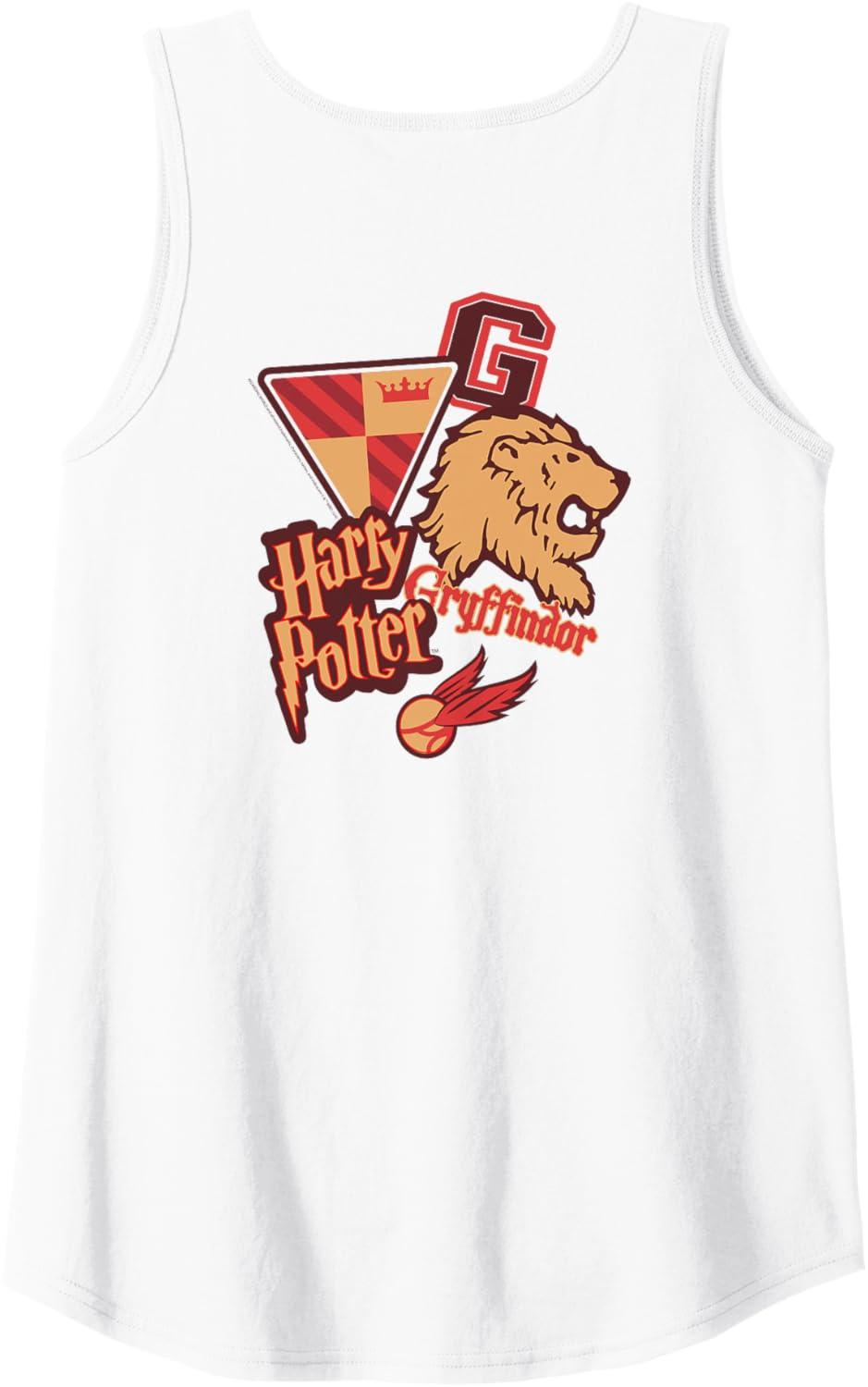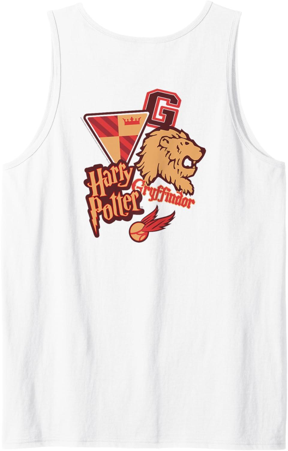 Amazon Essentials Harry Potter Front and Back Gryffindor Collegiate Collage Tank Top(White)