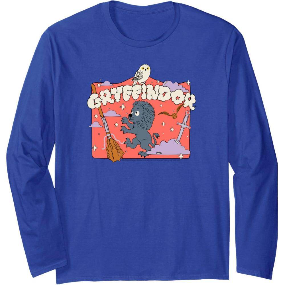 Amazon Essentials Harry Potter Hogwarts Gryffindor House Cartoon Scene Long Sleeve T-Shirt(Royal Blue)