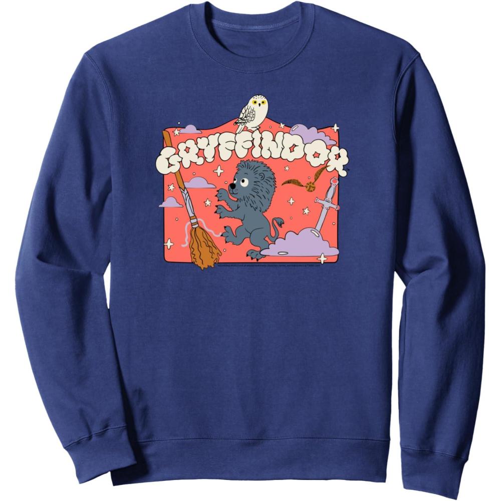Amazon Essentials Harry Potter Hogwarts Gryffindor House Cartoon Scene Sweatshirt(Navy Blue)