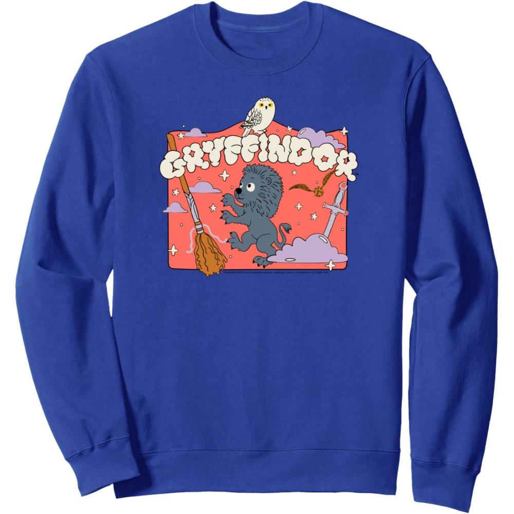 Amazon Essentials Harry Potter Hogwarts Gryffindor House Cartoon Scene Sweatshirt(Royal Blue)