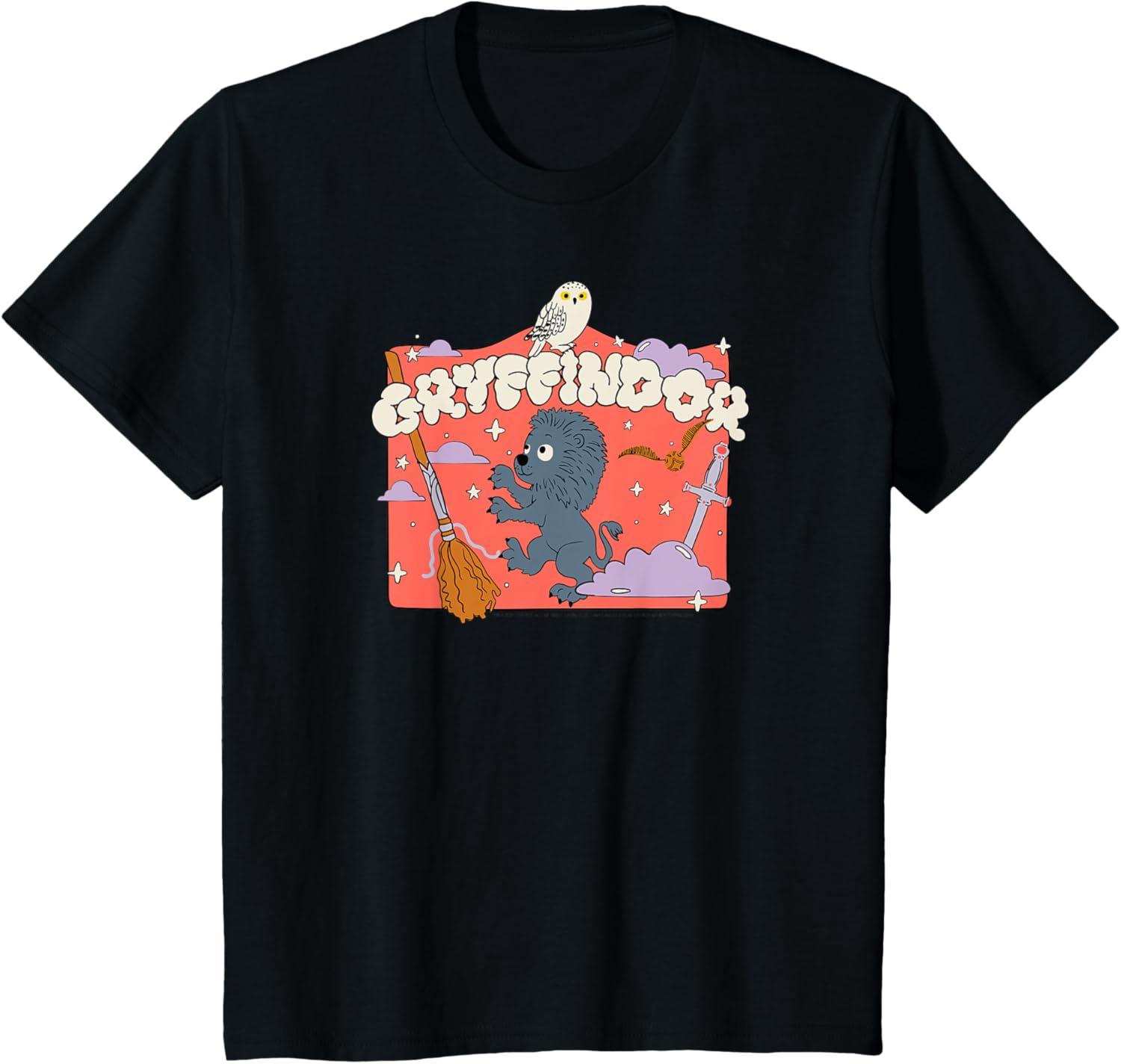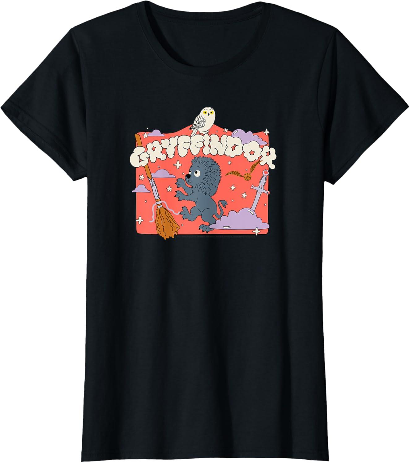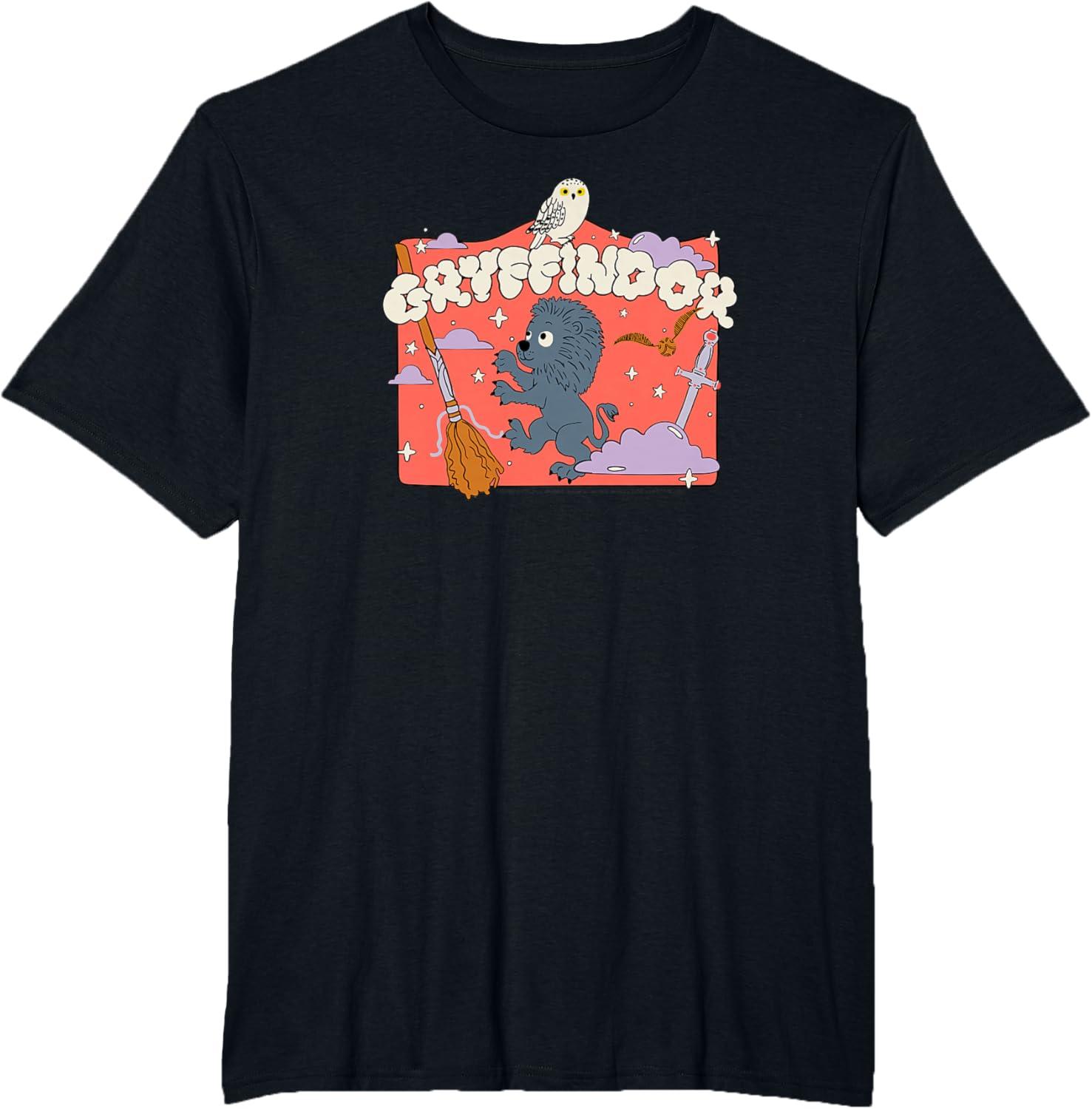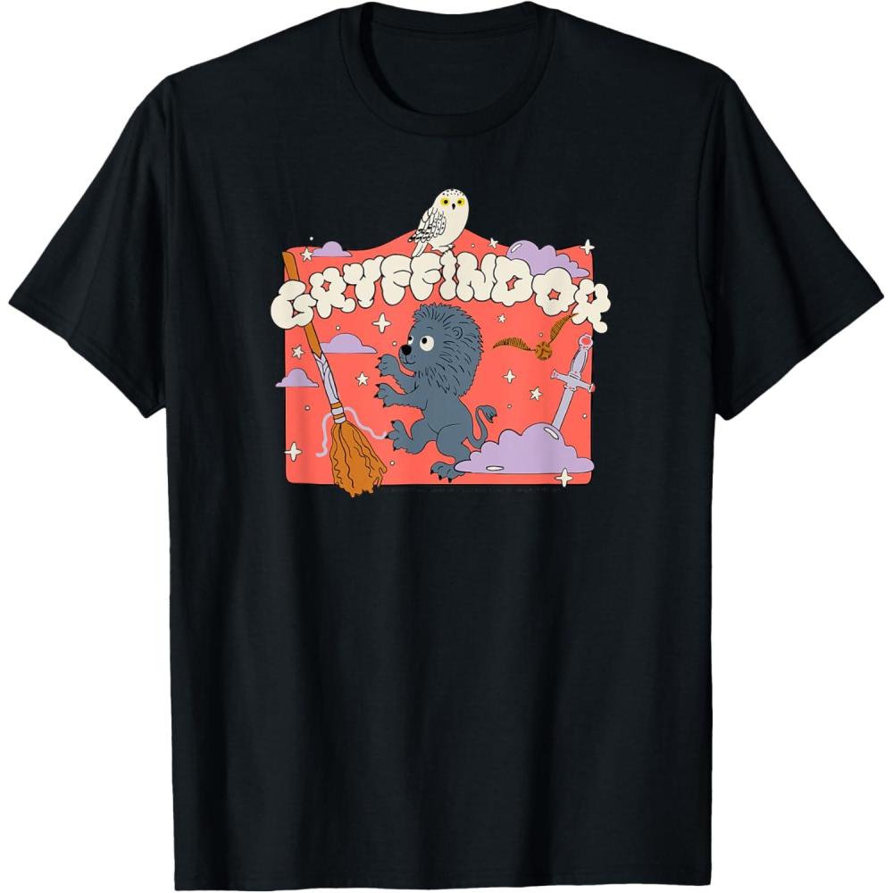 Amazon Essentials Harry Potter Hogwarts Gryffindor House Cartoon Scene T-Shirt(Black)