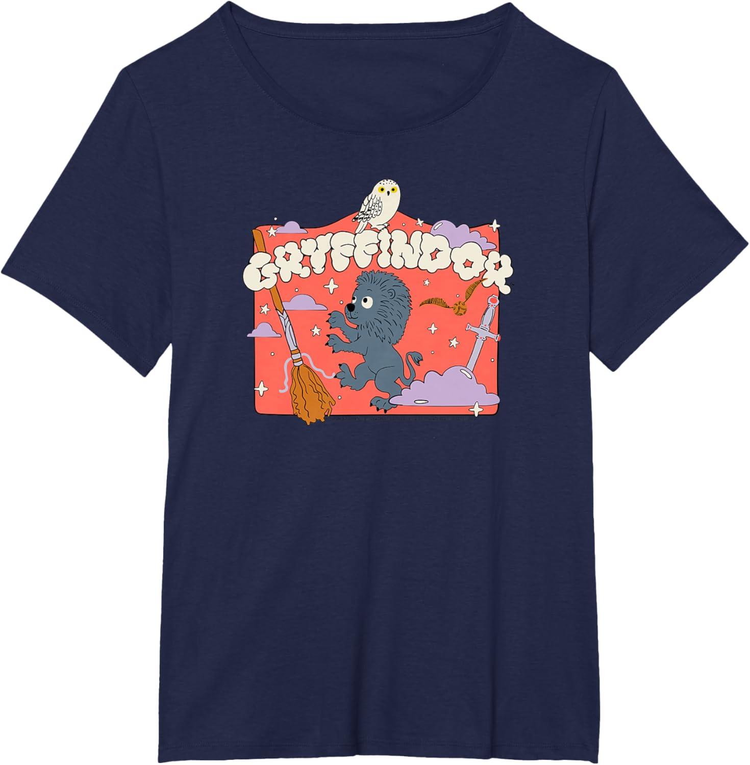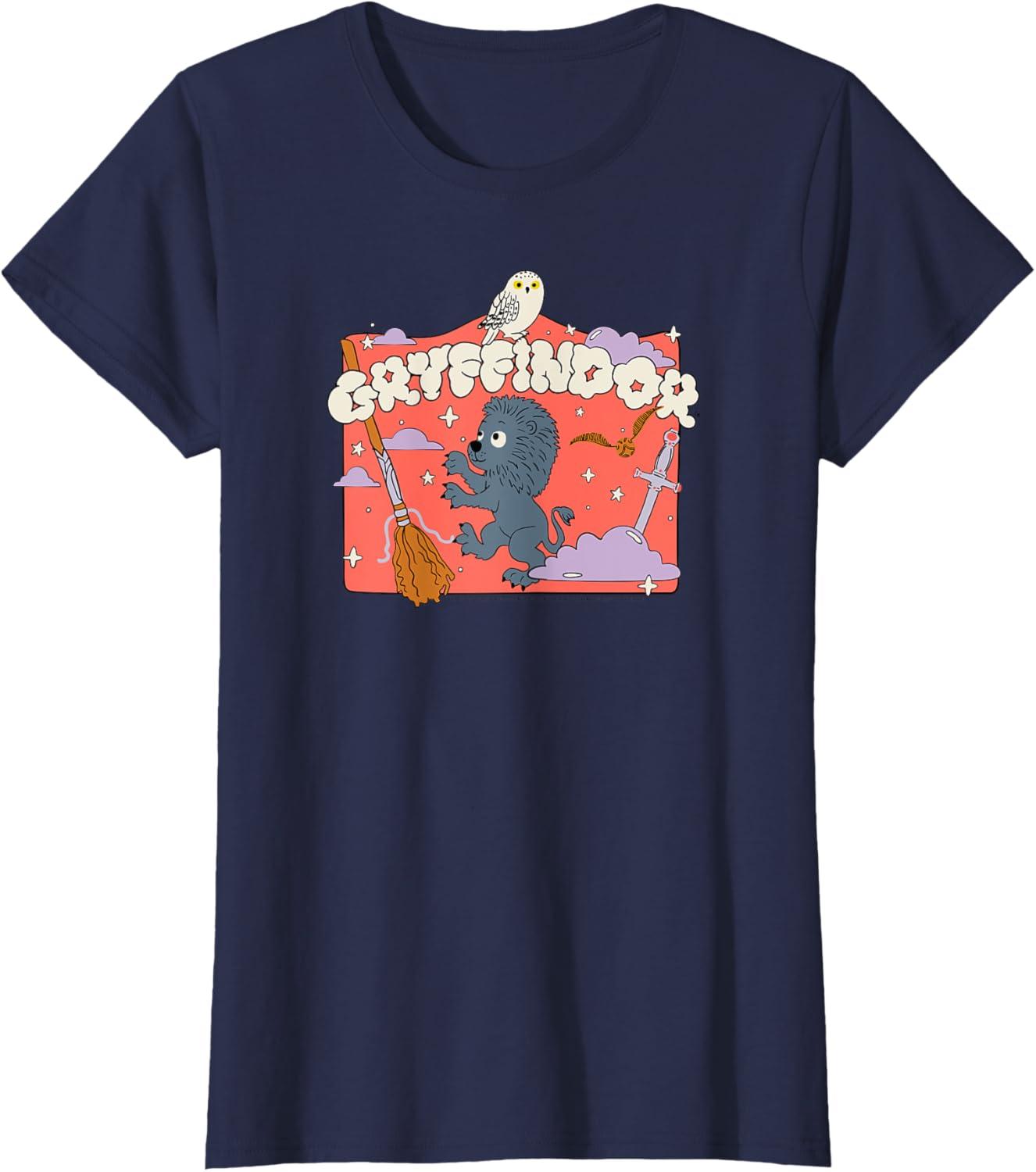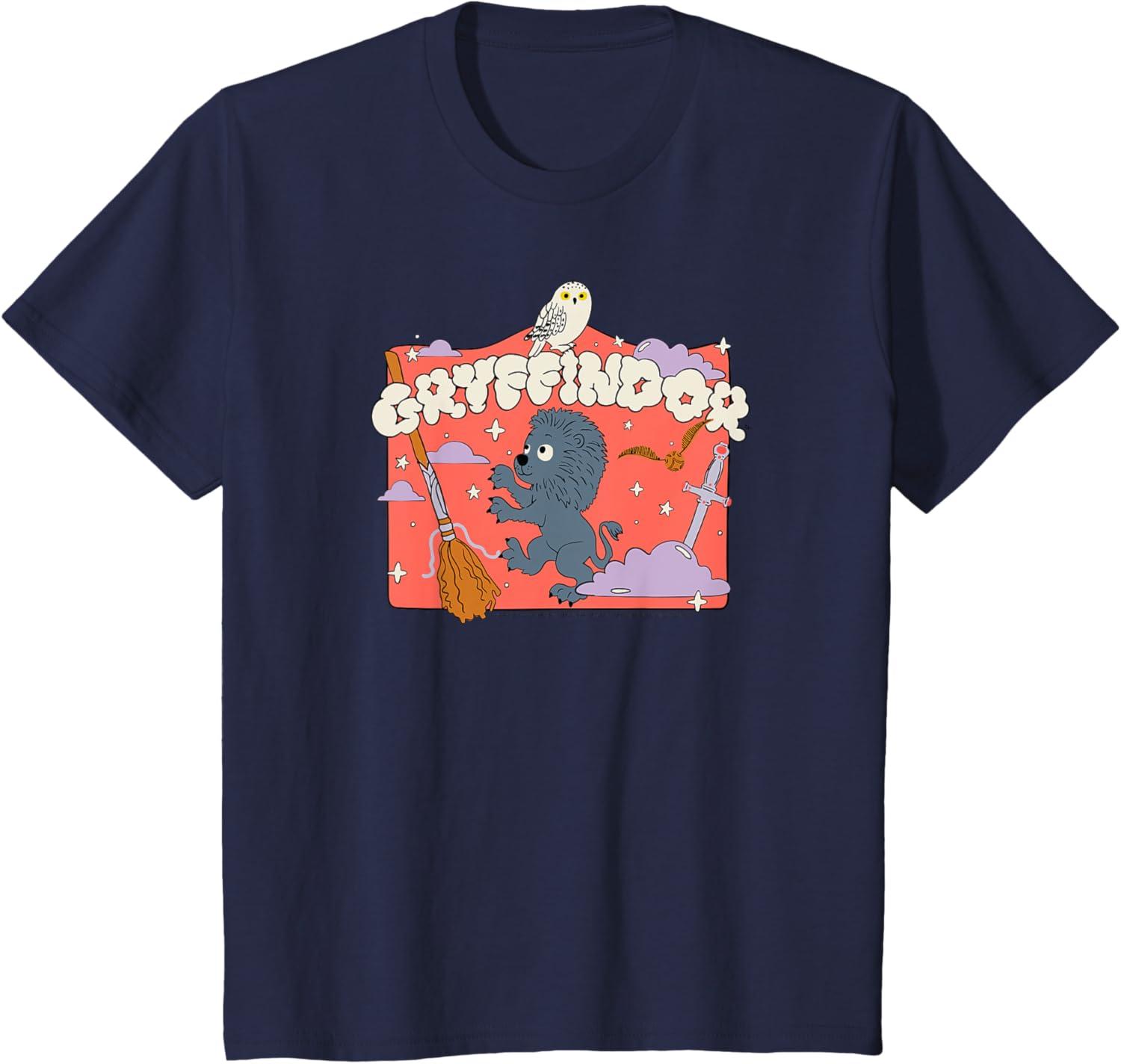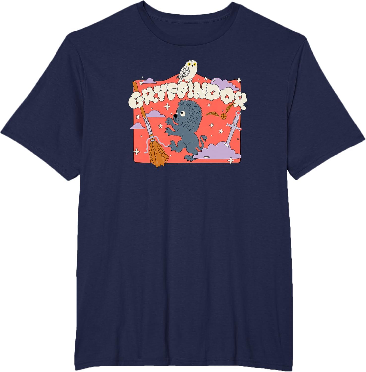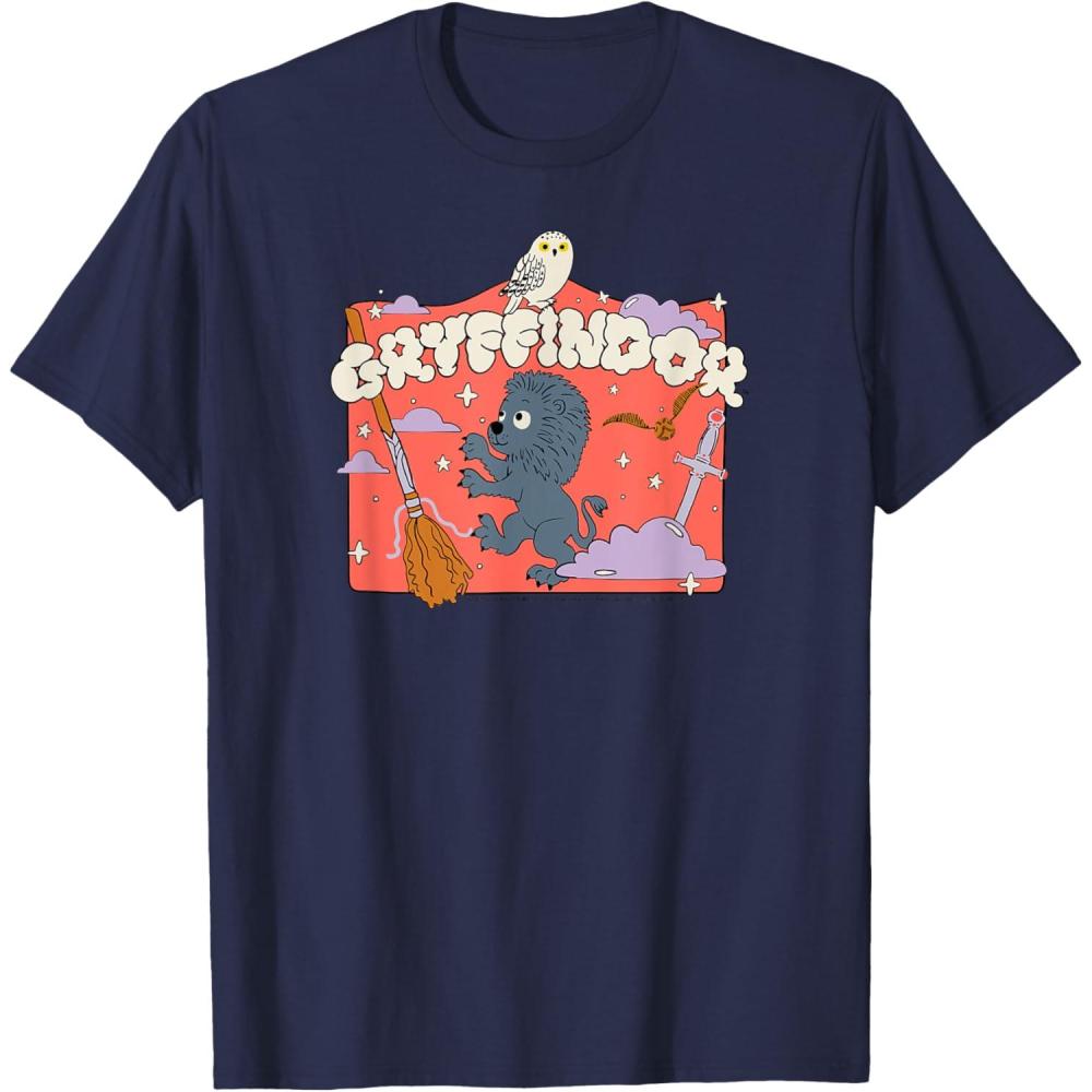 Amazon Essentials Harry Potter Hogwarts Gryffindor House Cartoon Scene T-Shirt(Navy Blue)