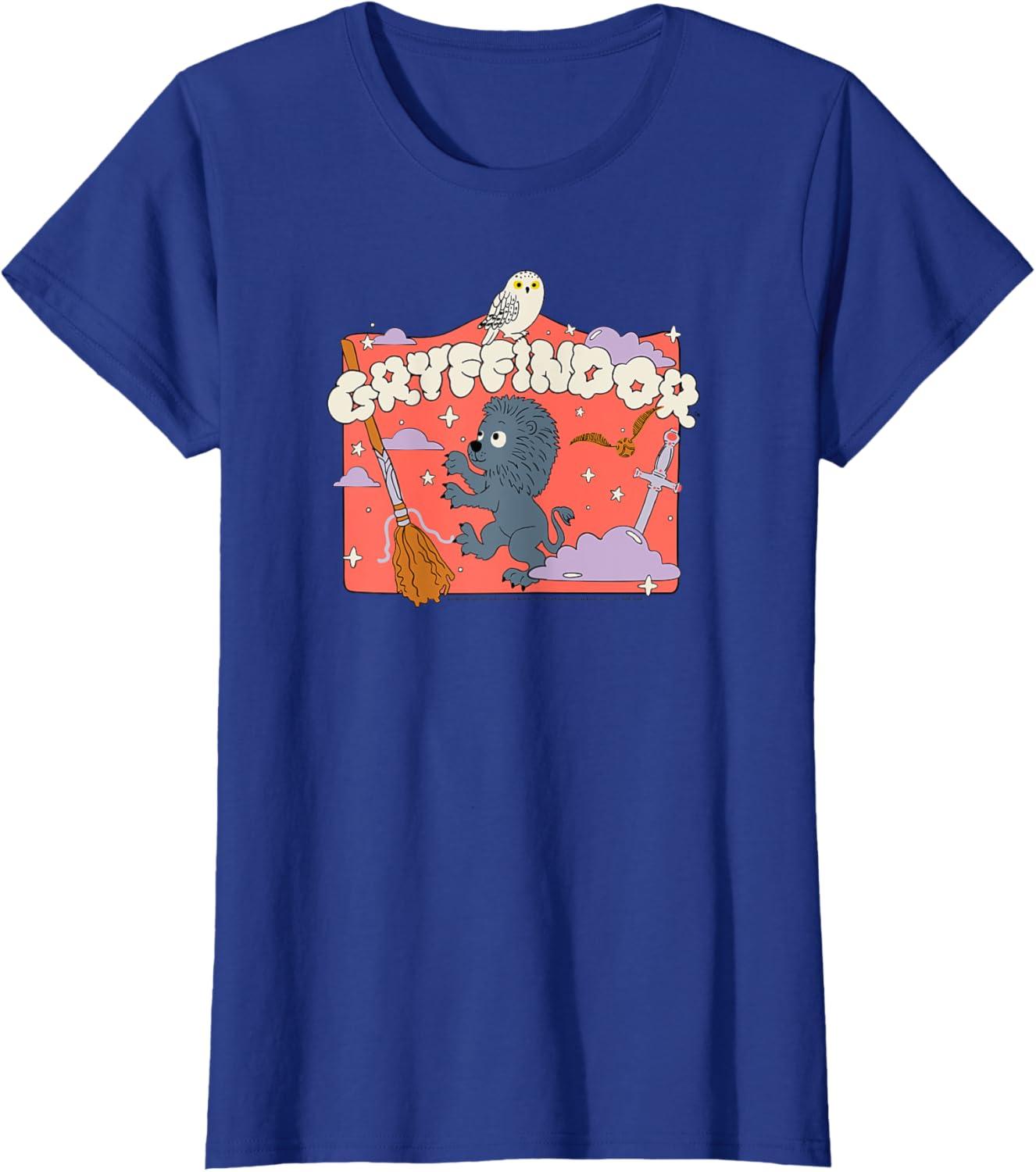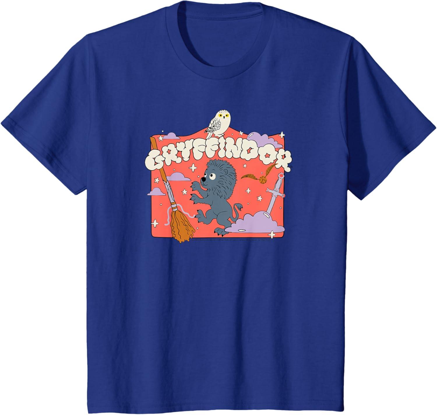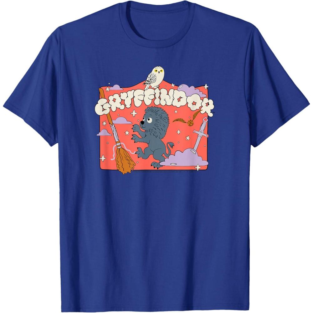 Amazon Essentials Harry Potter Hogwarts Gryffindor House Cartoon Scene T-Shirt(Royal Blue)