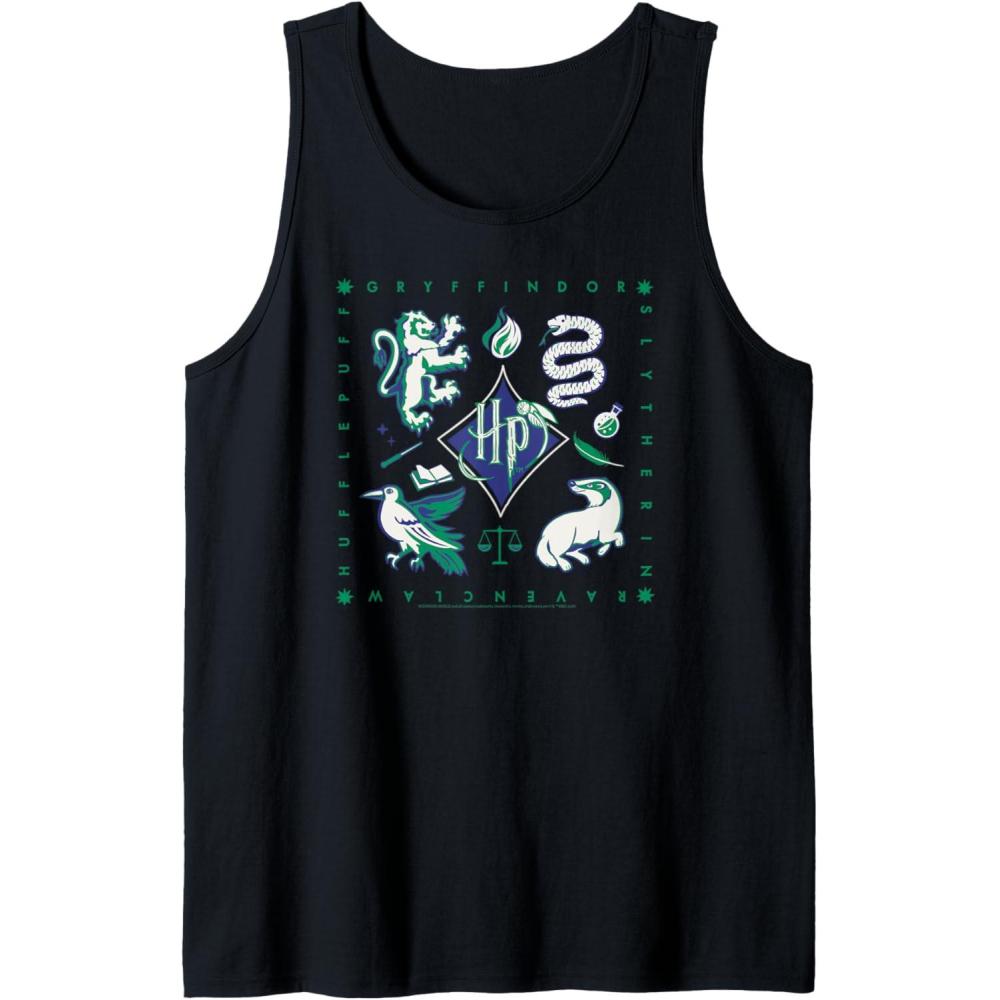 Amazon Essentials Harry Potter Hogwarts Houses Square Tank Top(Black)