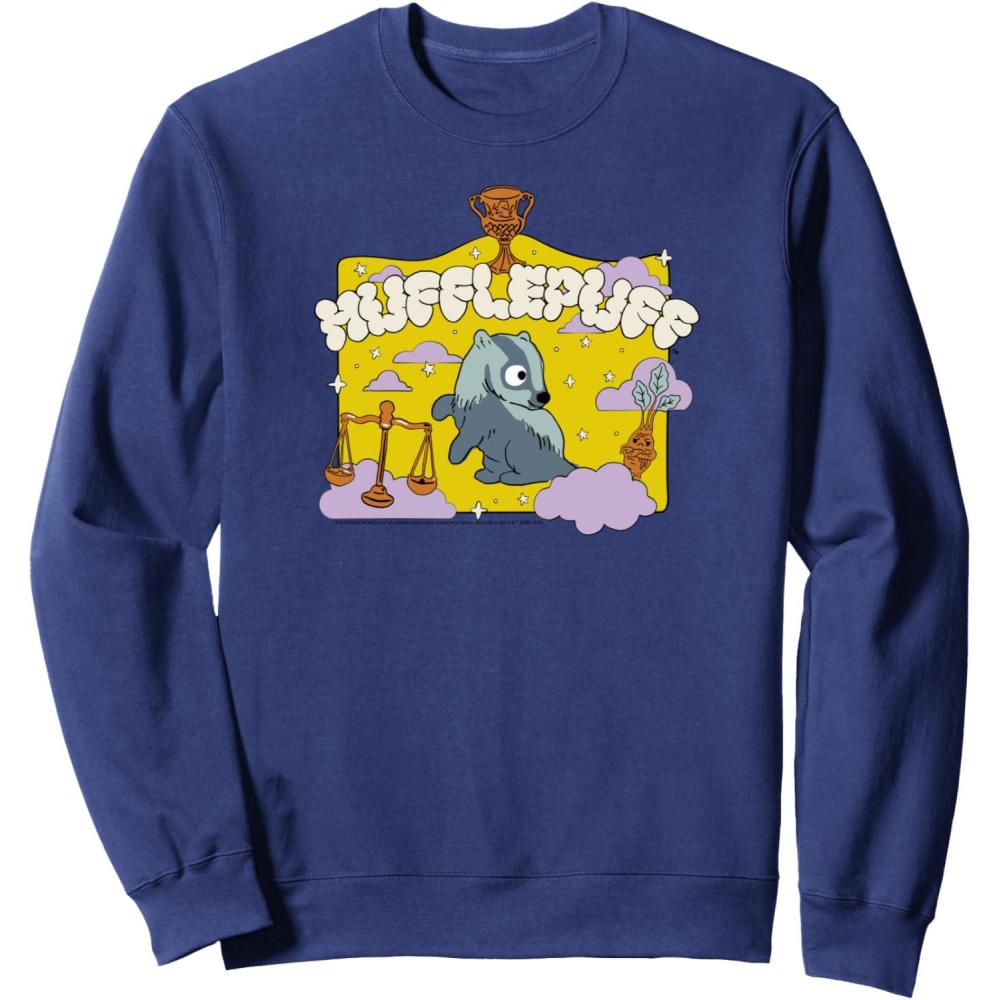Amazon Essentials Harry Potter Hogwarts Hufflepuff House Cartoon Scene Sweatshirt(Navy Blue)