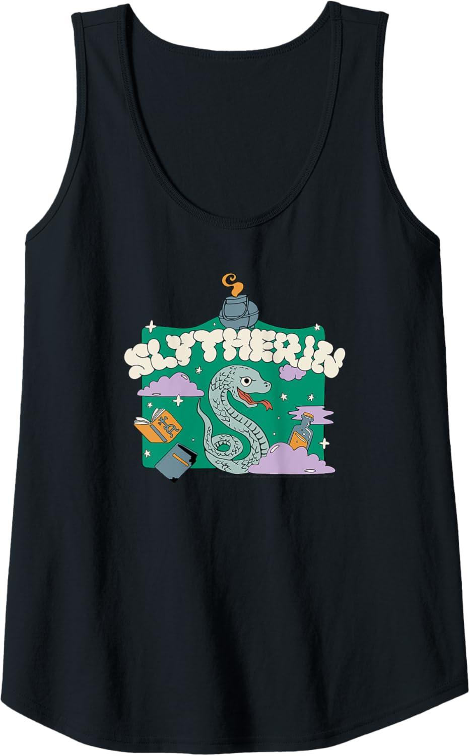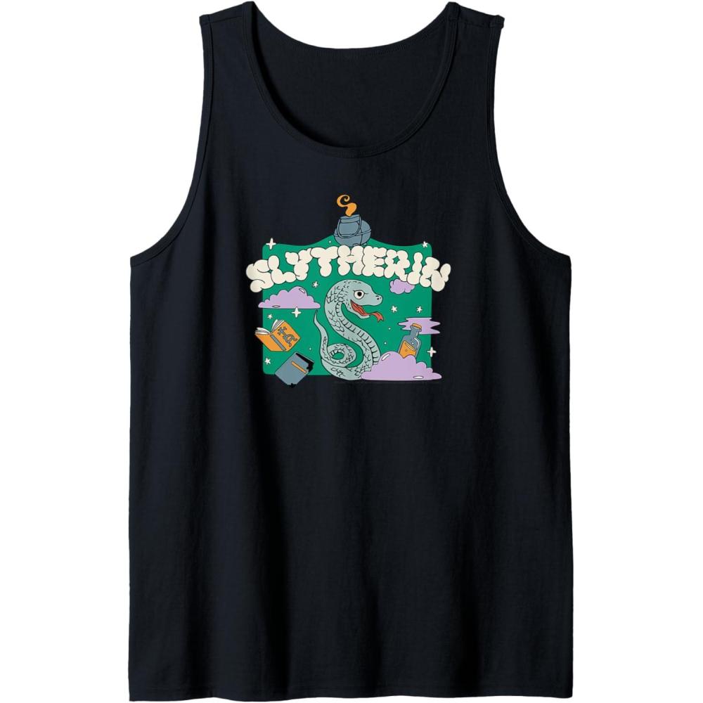 Amazon Essentials Harry Potter Hogwarts Slytherin House Cartoon Scene Tank Top(Black)