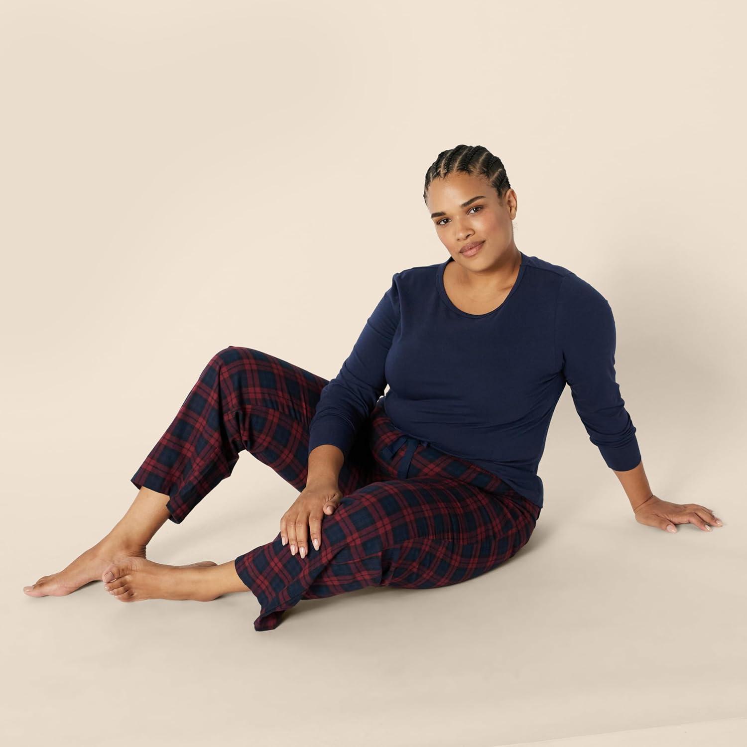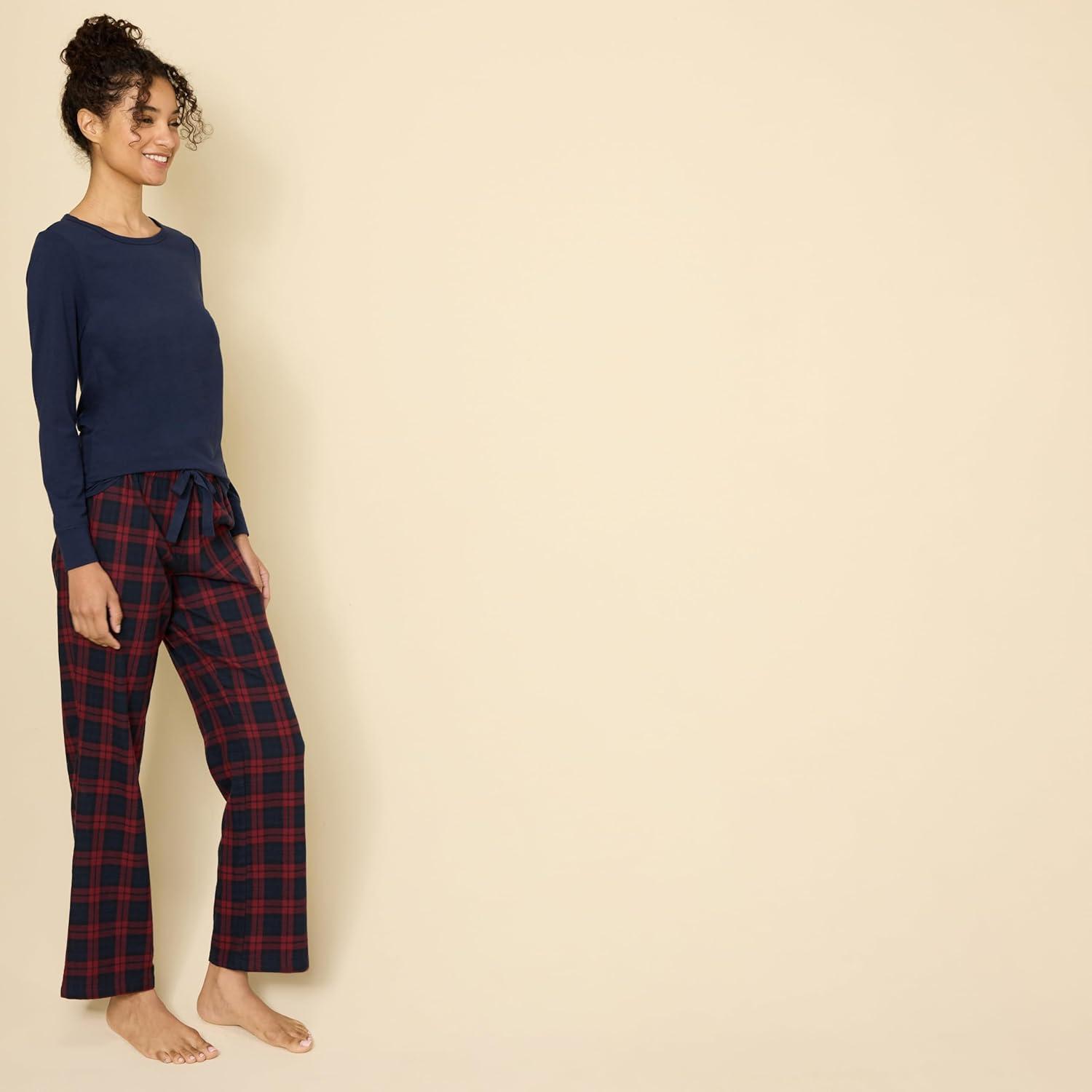 Amazon Essentials Harry Potter | Looney Tunes Women’s Lightweight Flannel Pant and Long-Sleeve T-Shirt Sleep Set(Burgundy Plaid/Navy)