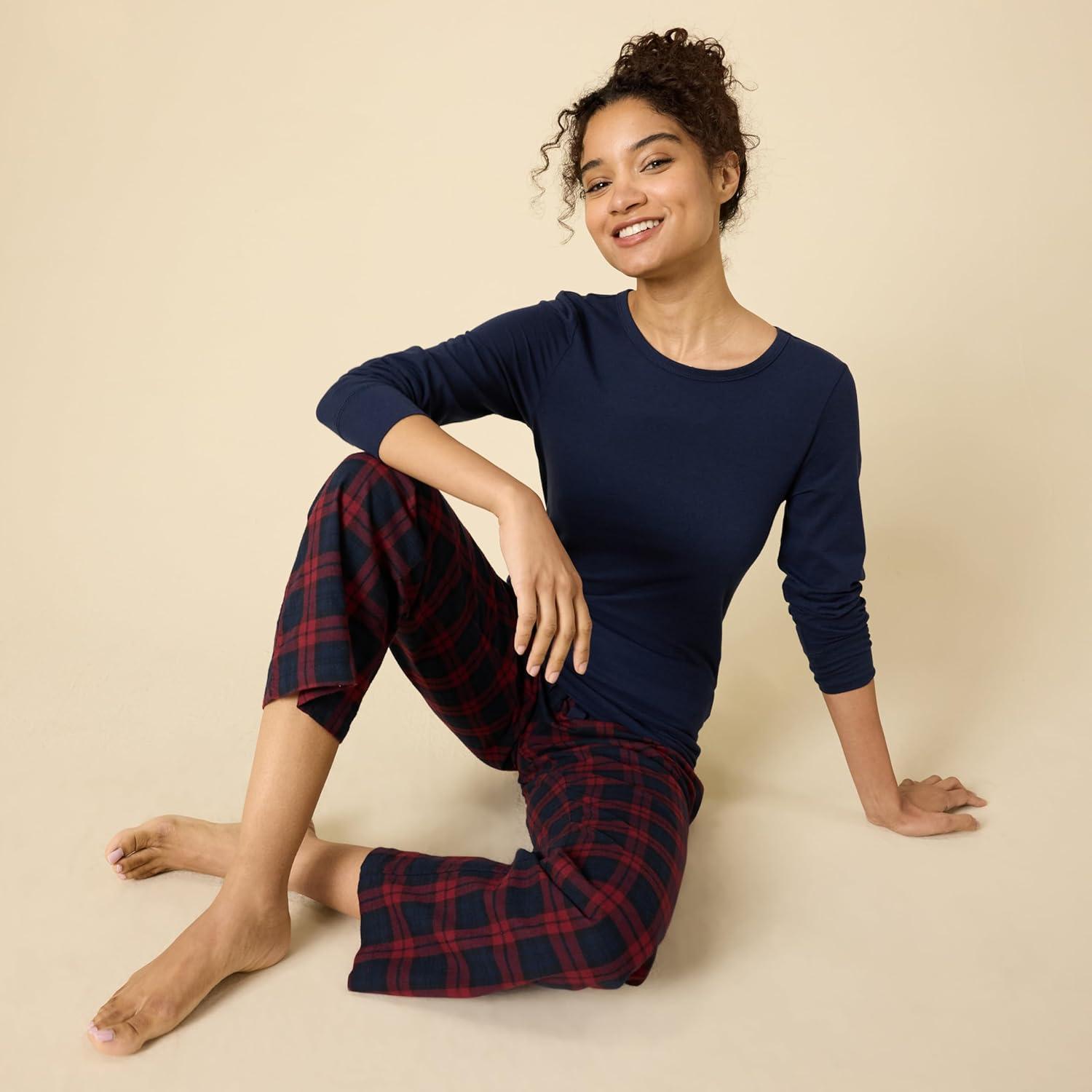 Amazon Essentials Harry Potter | Looney Tunes Women’s Lightweight Flannel Pant and Long-Sleeve T-Shirt Sleep Set(Blackwatch Plaid)
