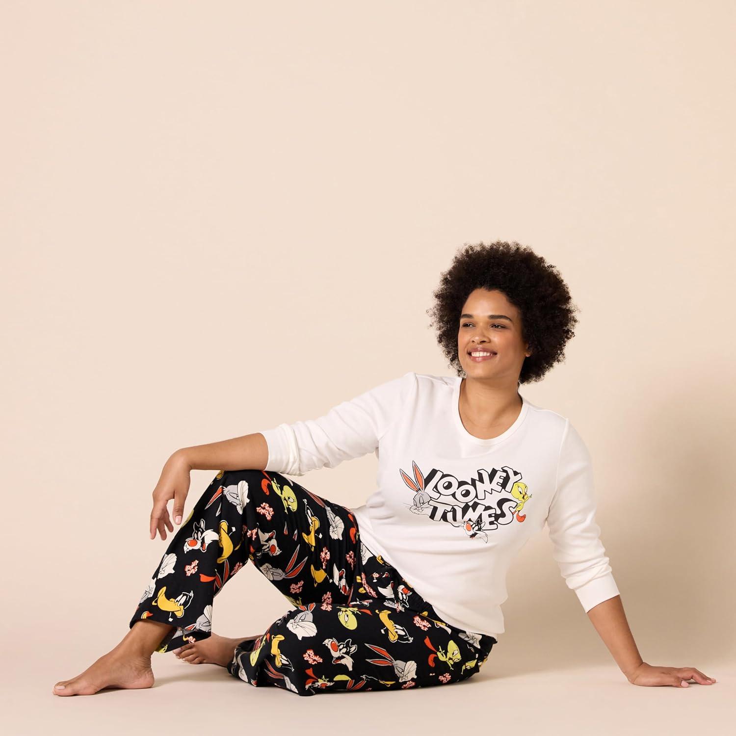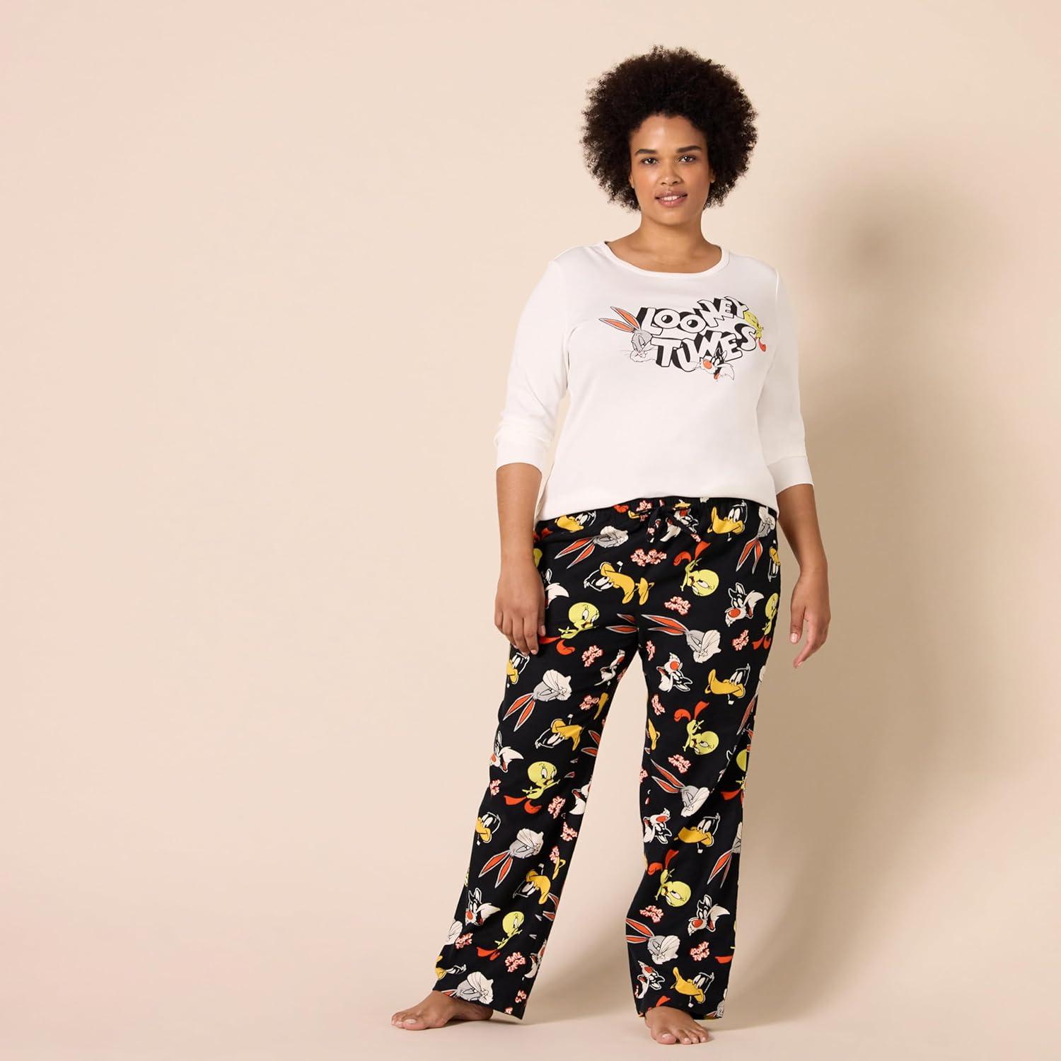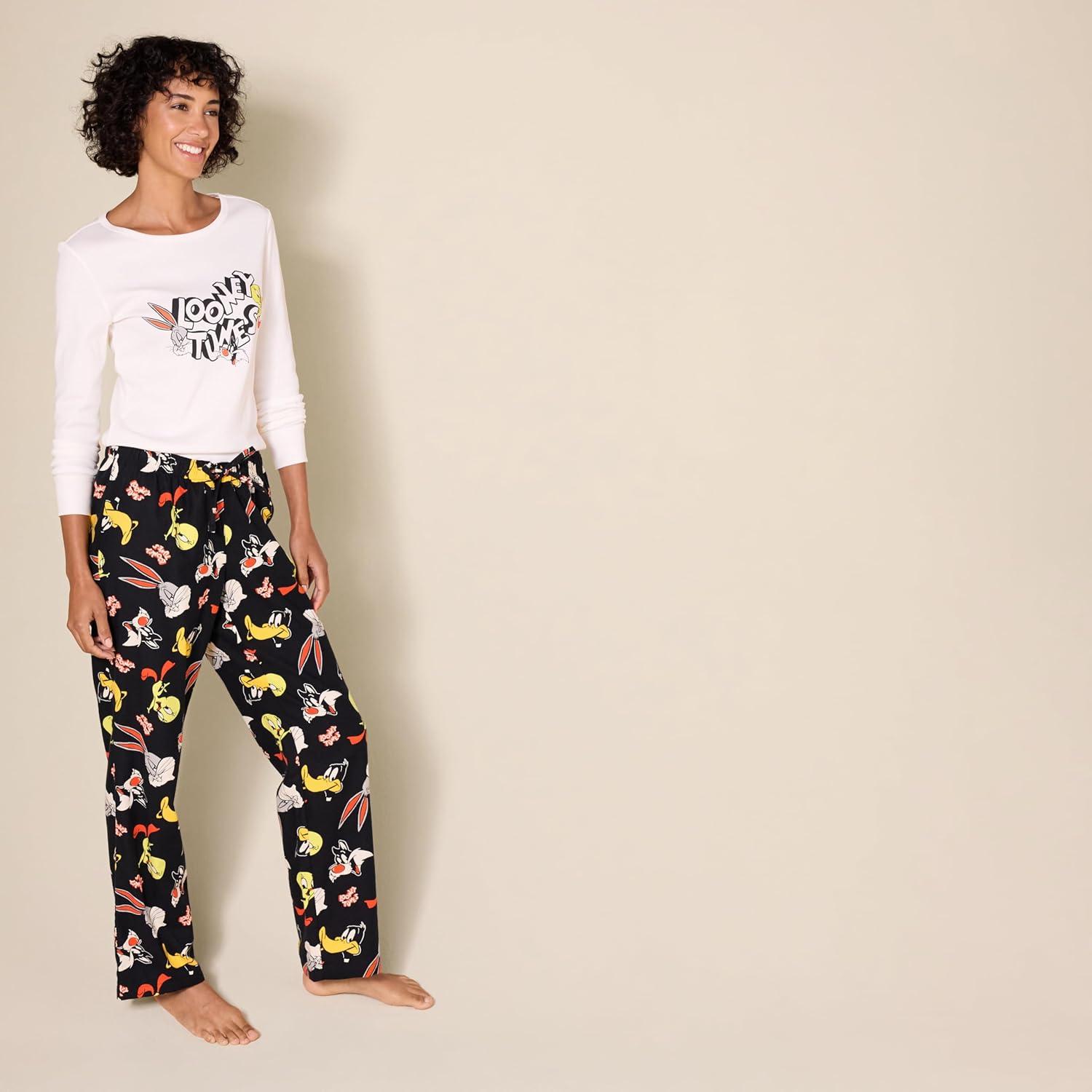 Amazon Essentials Harry Potter | Looney Tunes Women’s Lightweight Flannel Pant and Long-Sleeve T-Shirt Sleep Set(Looney Tunes Gang – Womens)
