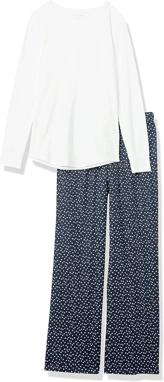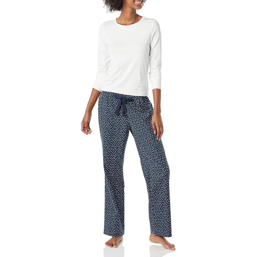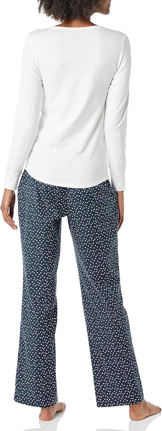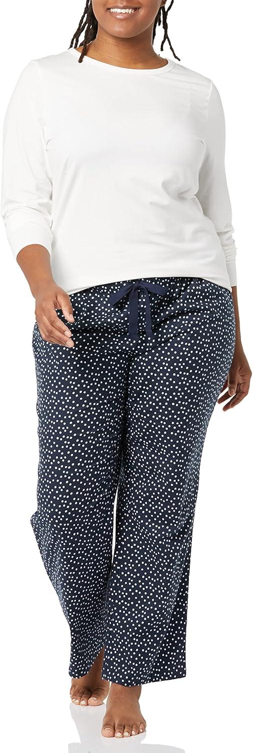 Amazon Essentials Harry Potter | Looney Tunes Women’s Lightweight Flannel Pant and Long-Sleeve T-Shirt Sleep Set(Navy Dots)
