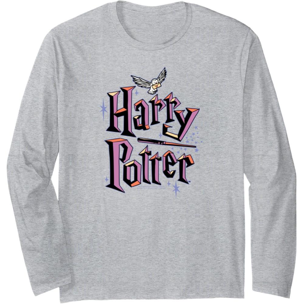 Amazon Essentials Harry Potter Multicolor Purple Logo Long Sleeve T-Shirt(Heather Grey)