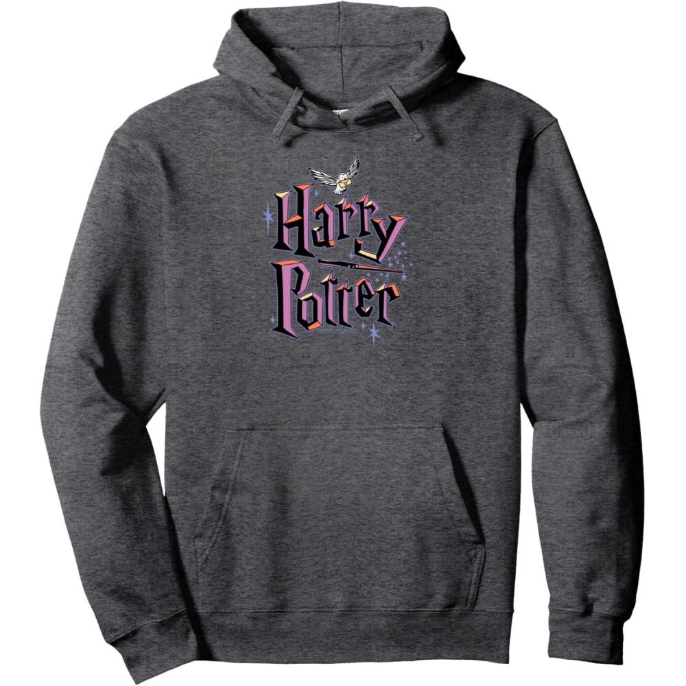 Amazon Essentials Harry Potter Multicolor Purple Logo Pullover Hoodie(Dark Heather Grey)