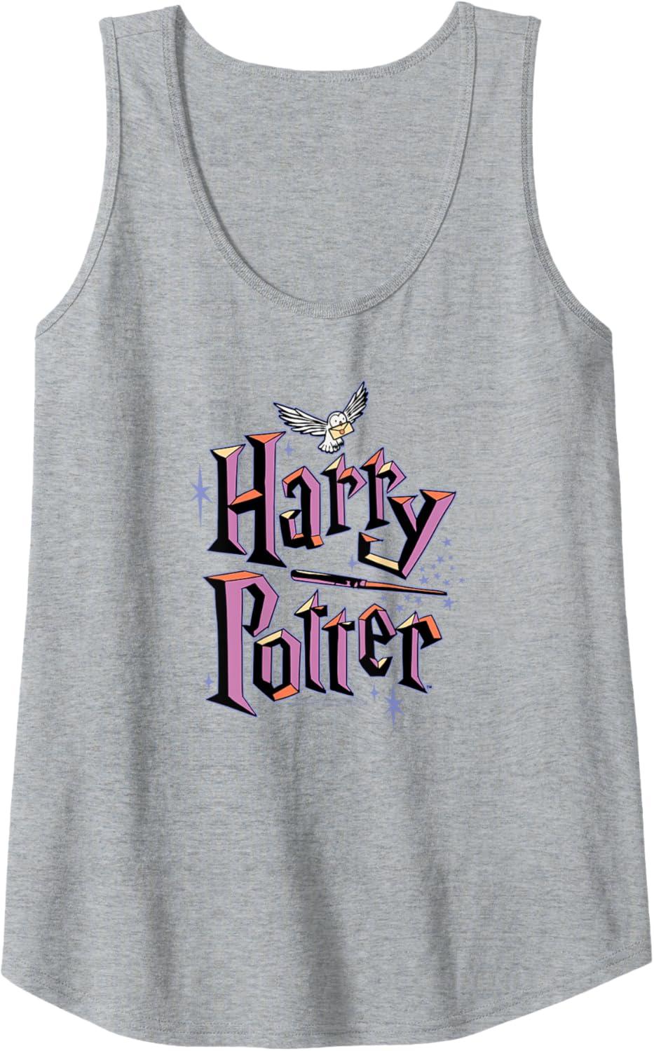 Amazon Essentials Harry Potter Multicolor Purple Logo Tank Top(Heather Grey)