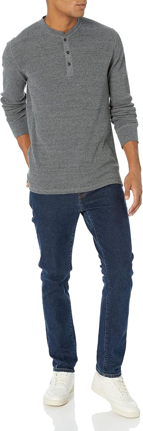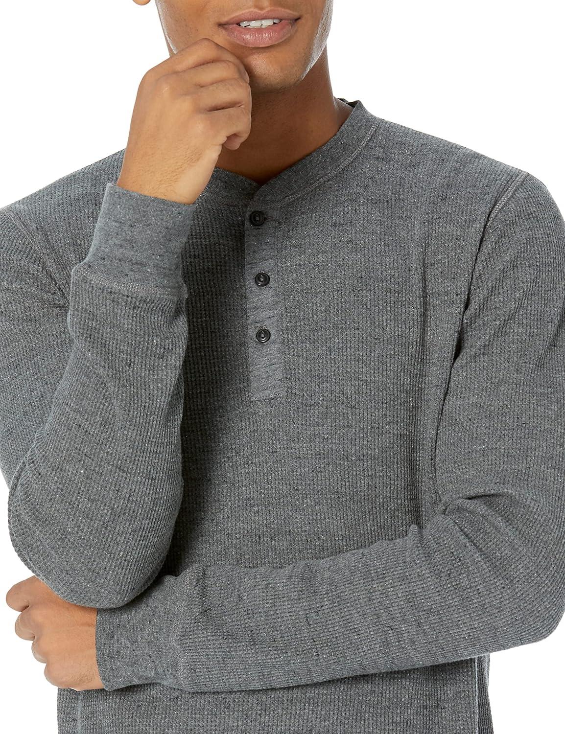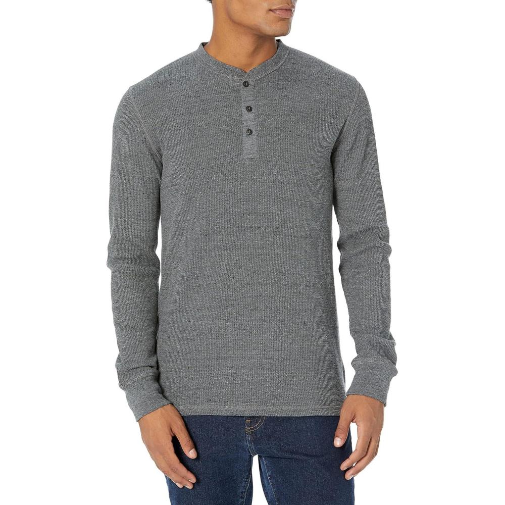 Amazon Essentials Henley Long Sleeve Shirts for Men, Regular-Fit Waffle(Charcoal)