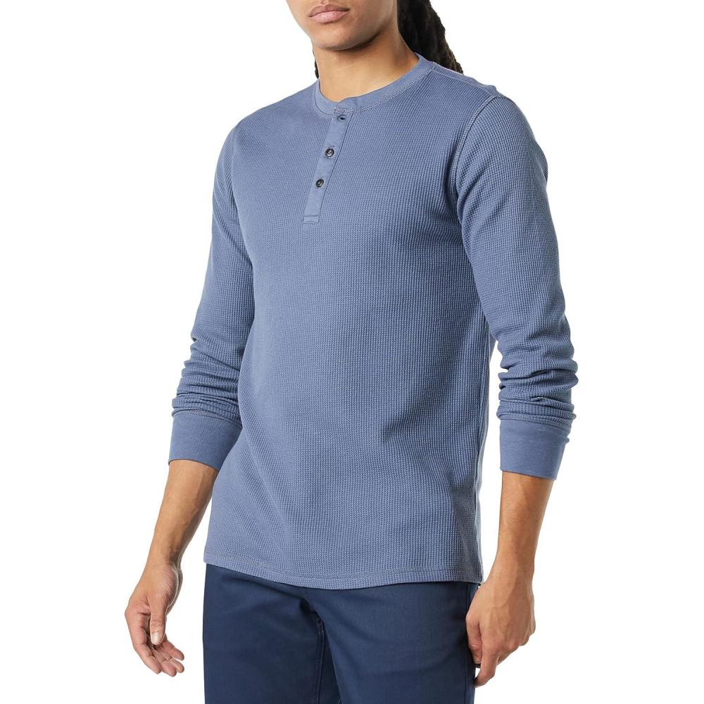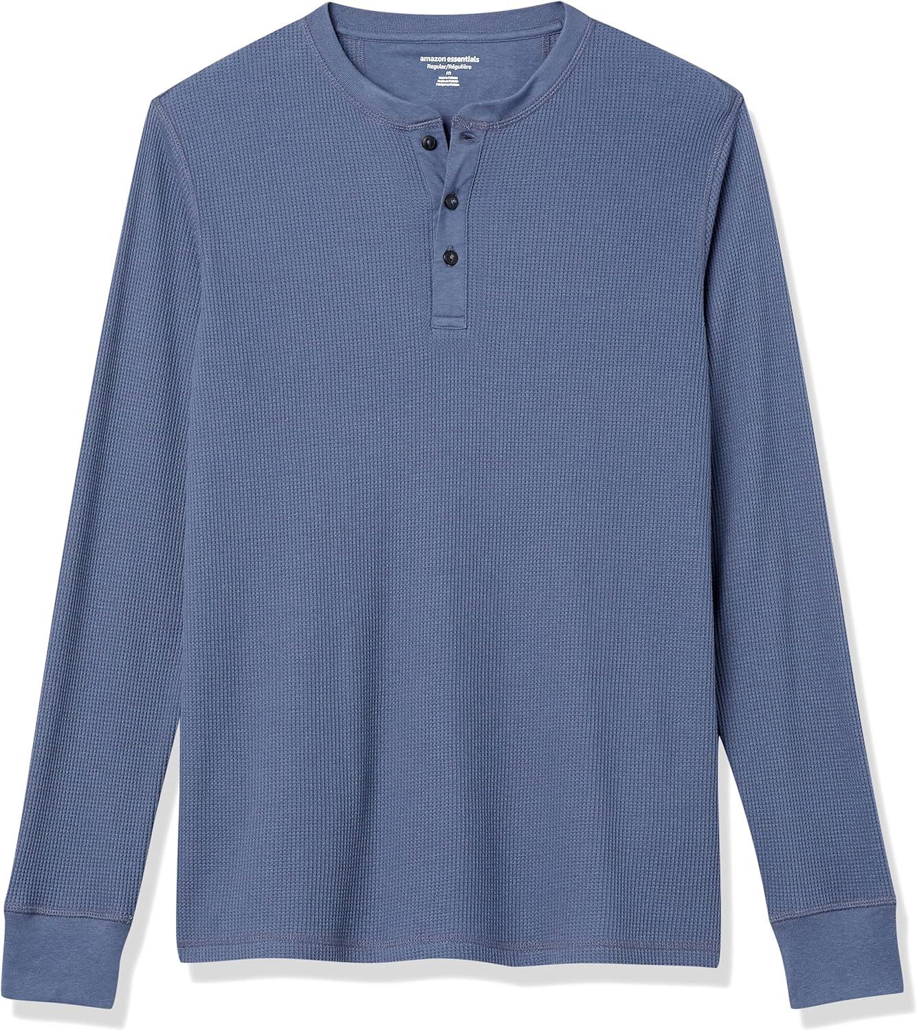 Amazon Essentials Henley Long Sleeve Shirts for Men, Regular-Fit Waffle(Indigo)