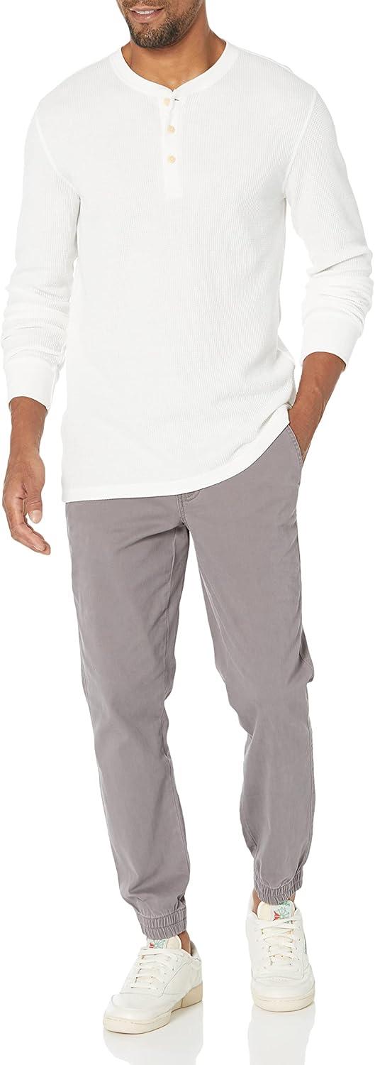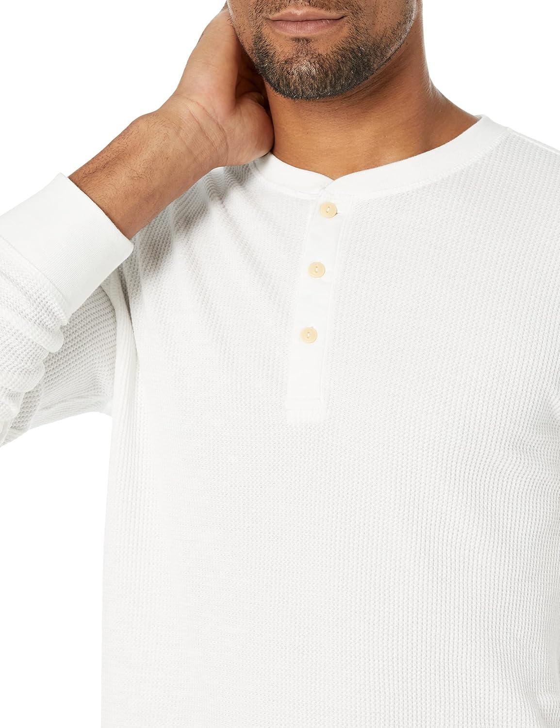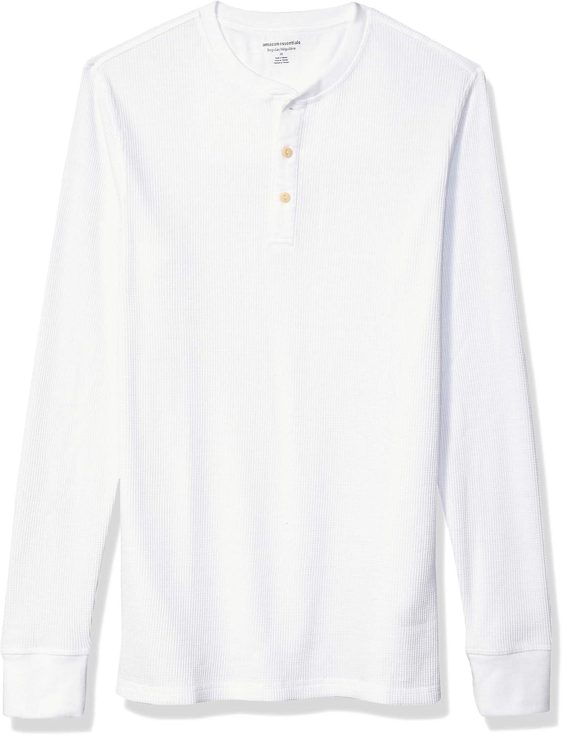 Amazon Essentials Henley Long Sleeve Shirts for Men, Regular-Fit Waffle(White)