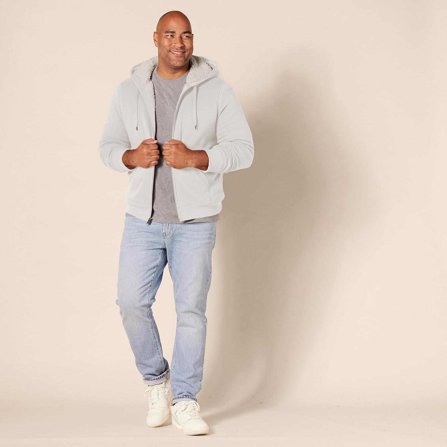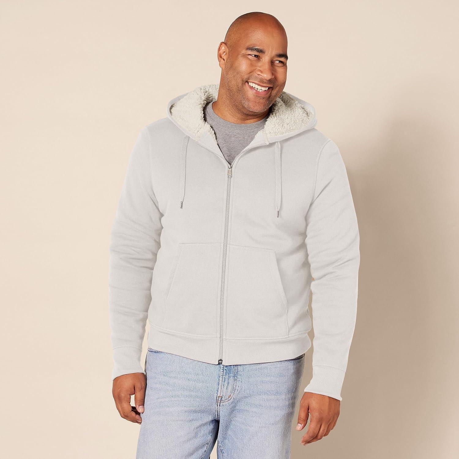 Amazon Essentials Hoodie For Men, Sherpa-Lined Full-Zip Fleece Sweatshirt(Light Grey Heather)
