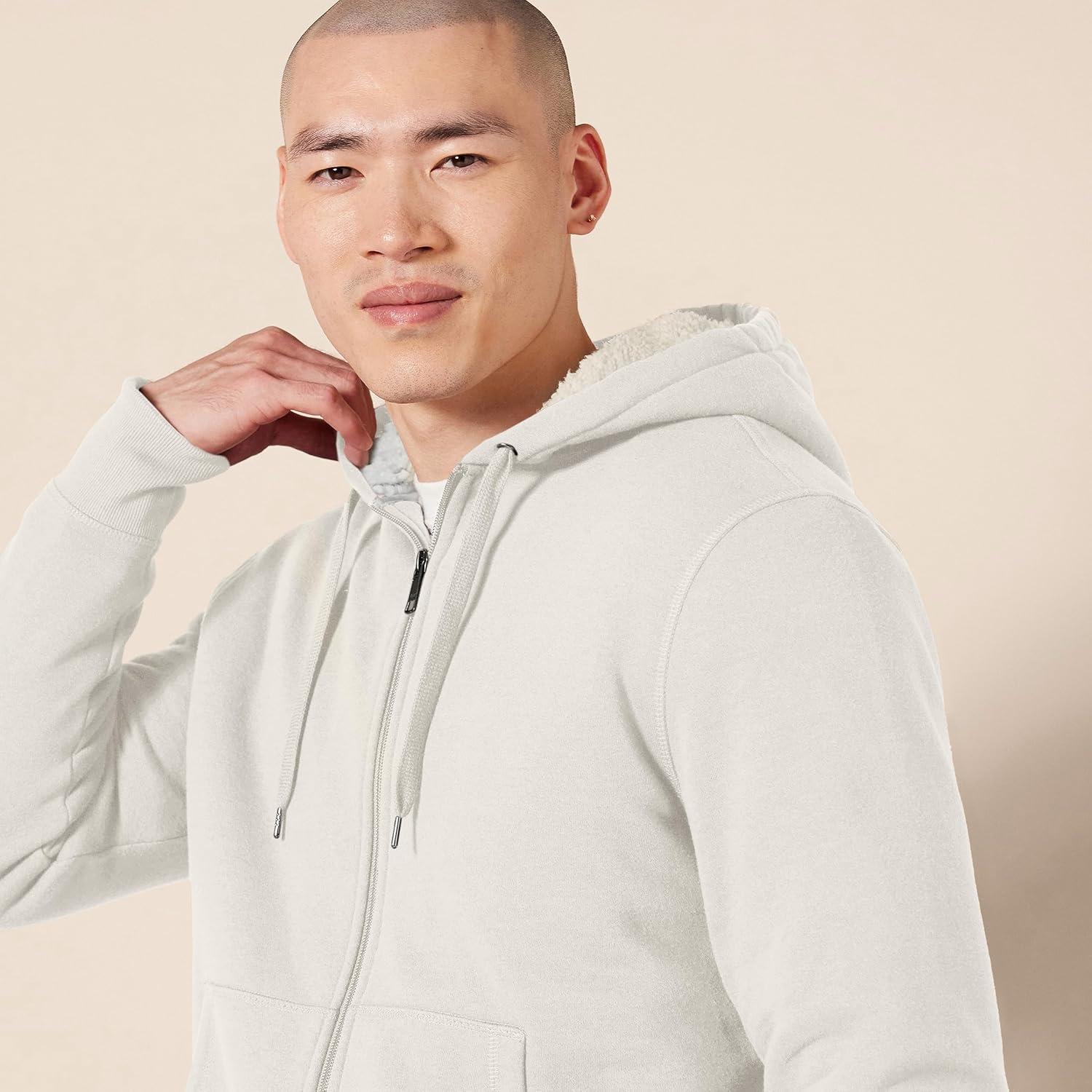 Amazon Essentials Hoodie For Men, Sherpa-Lined Full-Zip Fleece Sweatshirt(Off-white)