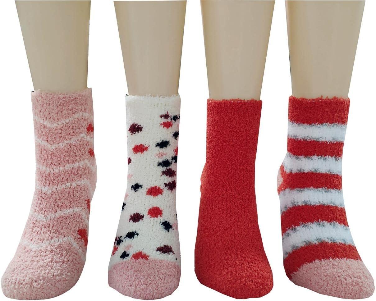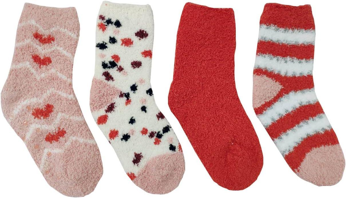 Amazon Essentials Kids Cozy Socks with Non-Skid Bottoms, 4 Pairs(Pink/White/Hearts)