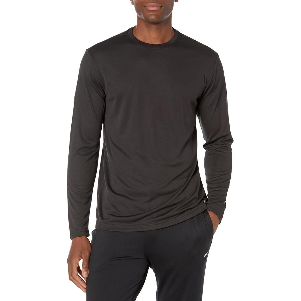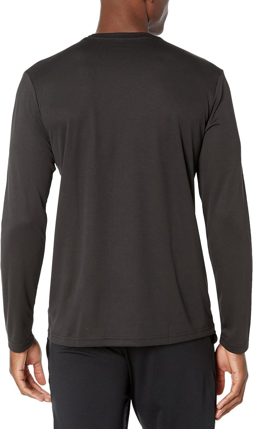 Experience comfort and versatility with our Amazon Essentials Men's Performance Tech Long-Sleeve T-Shirt, crafted with performance tech fabric, offering an ultra-lightweight, breathable, and moisture-wicking experience that keeps you cool during workouts. The subtle honeycomb texture knit and 4-way stretch allow for more flexibility. With a relaxed fit through the shoulders, chest, and waist, coupled with a longer body length, our shirt provides added coverage and a comfortable range of movement.