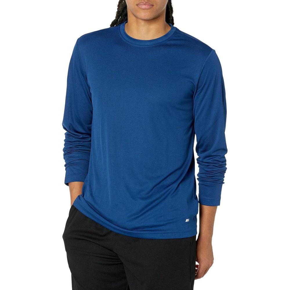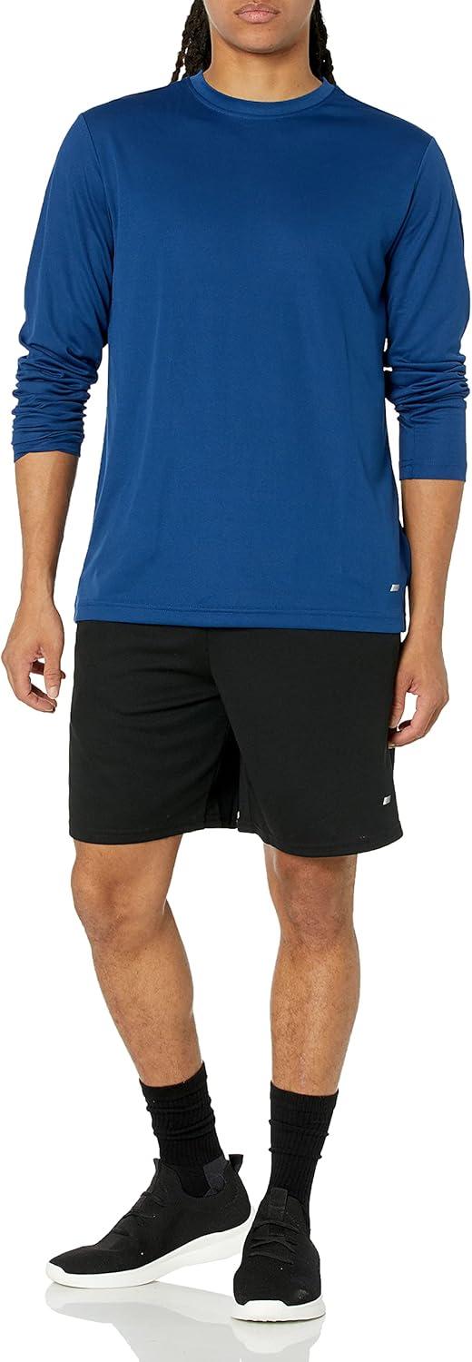 Experience comfort and versatility with our Amazon Essentials Men's Performance Tech Long-Sleeve T-Shirt, crafted with performance tech fabric, offering an ultra-lightweight, breathable, and moisture-wicking experience that keeps you cool during workouts. The subtle honeycomb texture knit and 4-way stretch allow for more flexibility. With a relaxed fit through the shoulders, chest, and waist, coupled with a longer body length, our shirt provides added coverage and a comfortable range of movement.