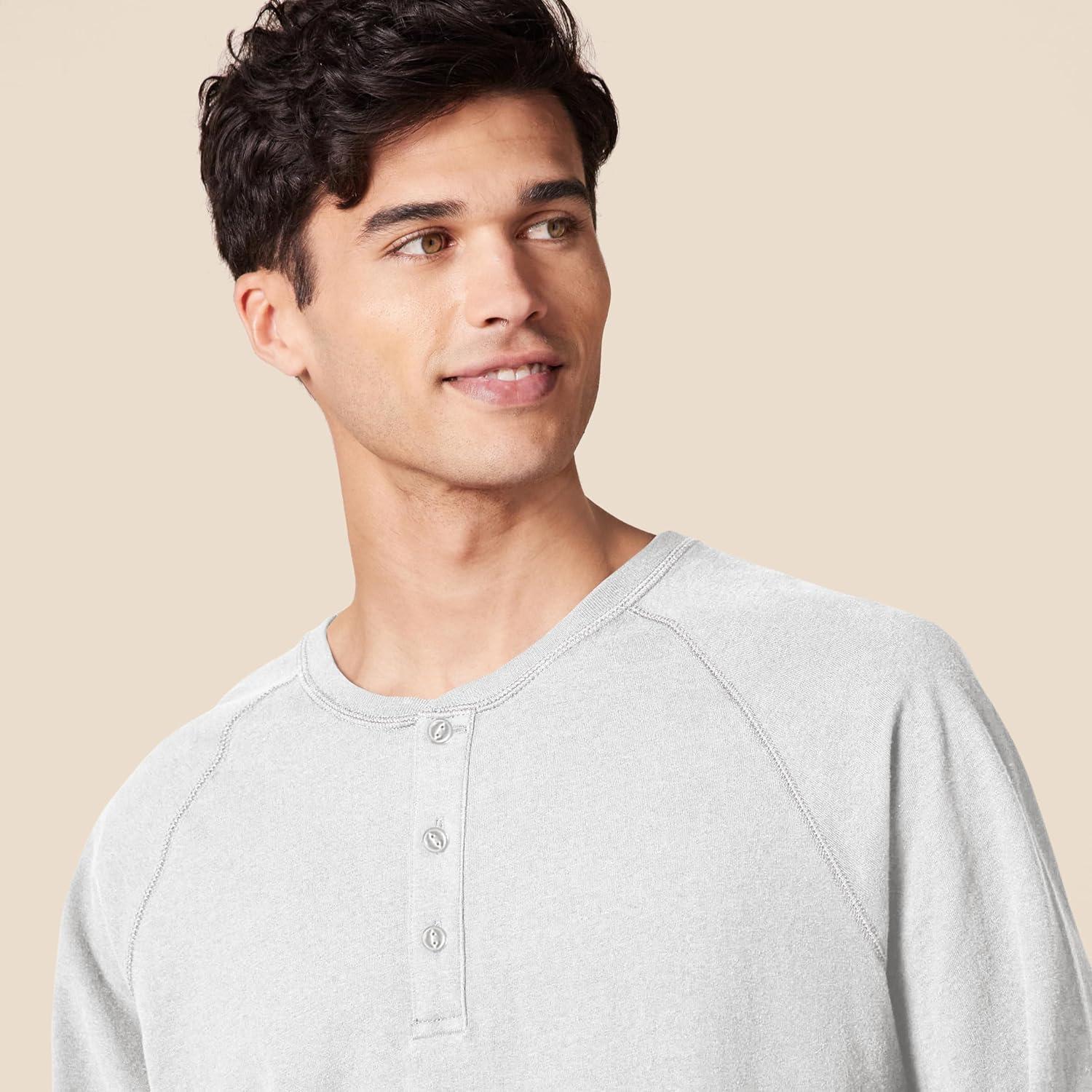 Amazon Essentials Long Sleeve Shirt for Men, Regular-Fit Henley, Available in Big & Tall(Light Grey Heather)