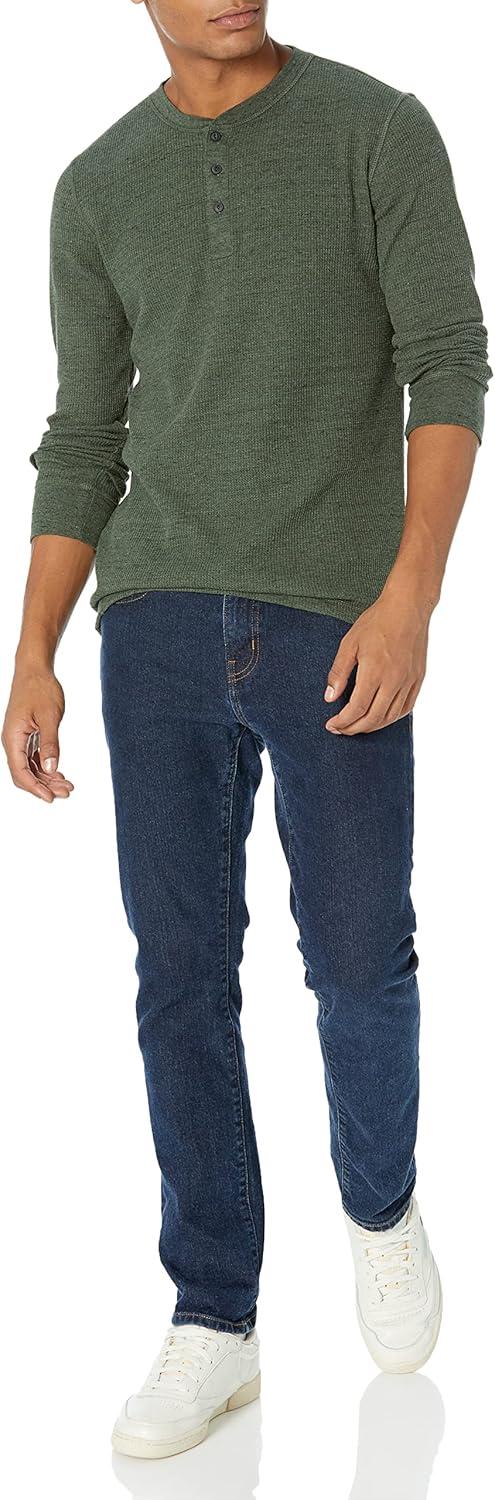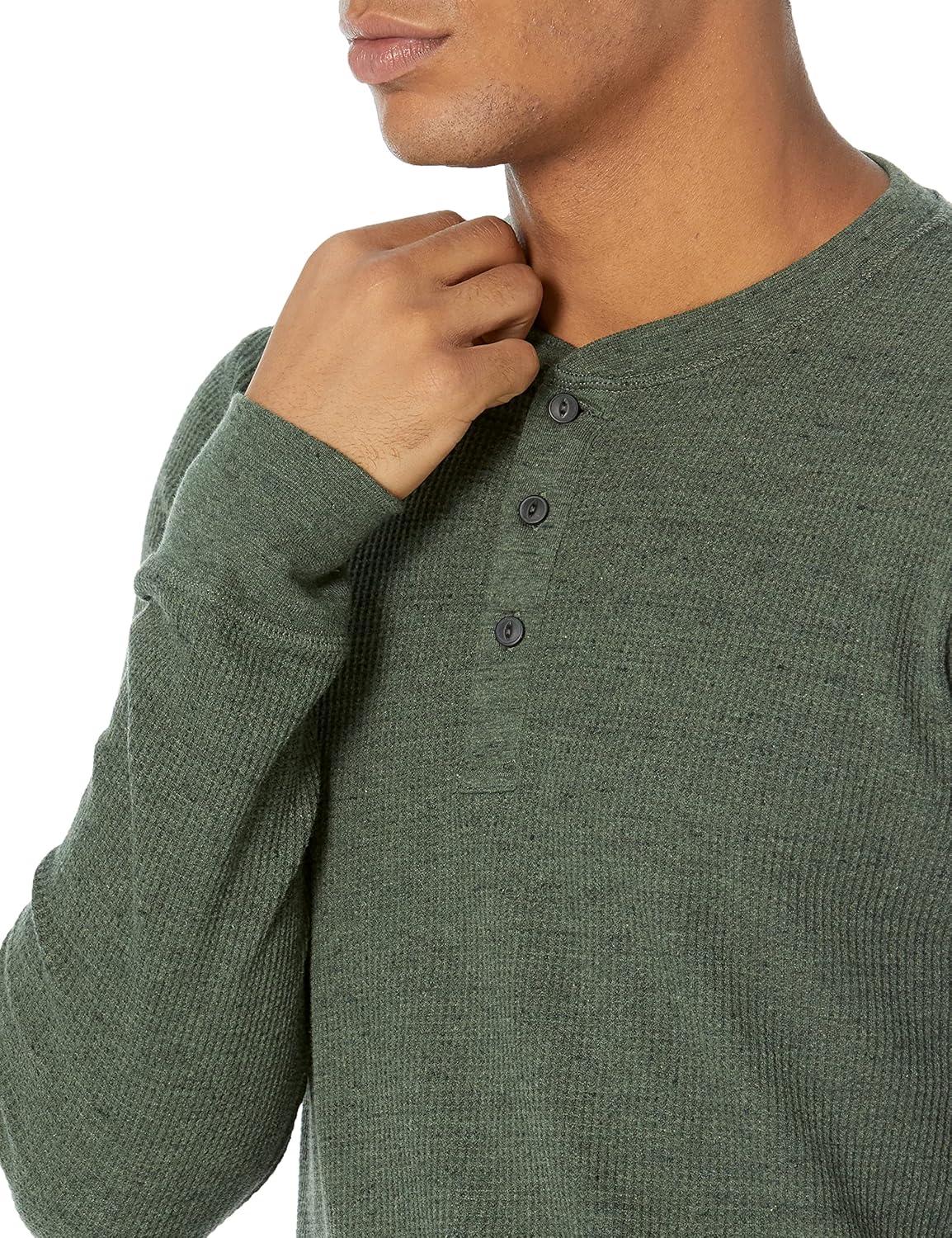 Amazon Essentials Long Sleeve Waffle Henley Shirts for Men, Slim-Fit(Olive Heather)