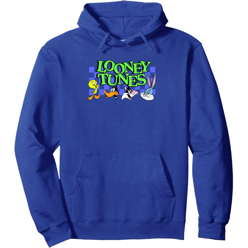 Amazon Essentials Looney Tunes Checkerboard with Characters Pullover Hoodie(Royal Blue)