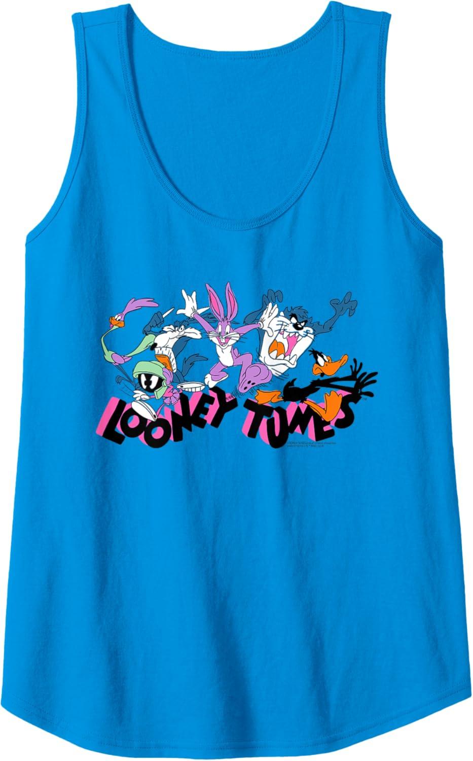 Amazon Essentials Looney Tunes Pink Logo with Running Characters Tank Top(Sapphire Blue)