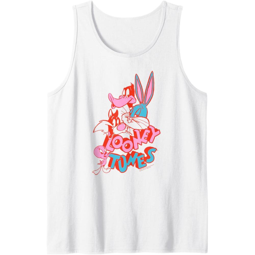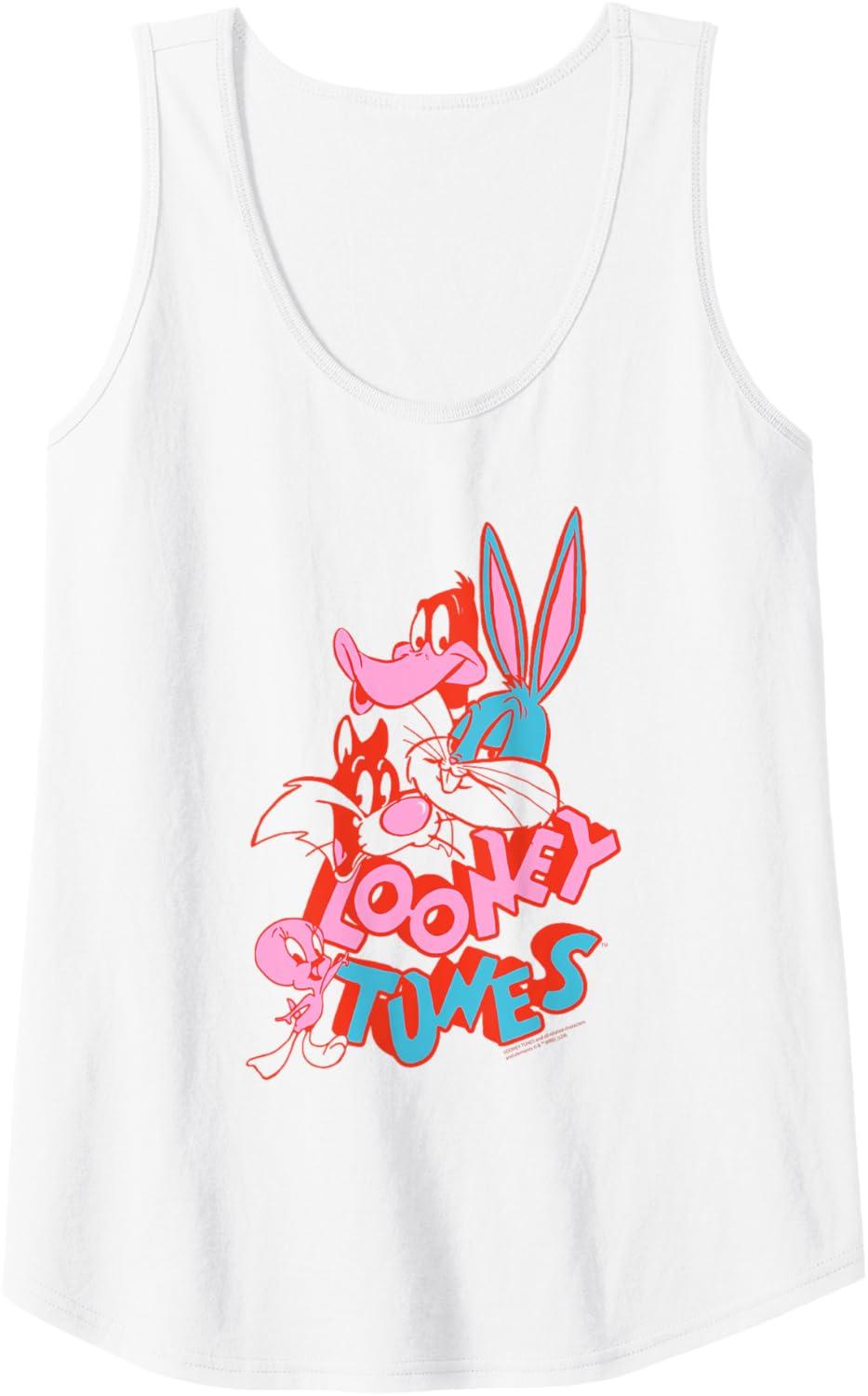 Amazon Essentials Looney Tunes Red and Pink Character Collage Tank Top(White)