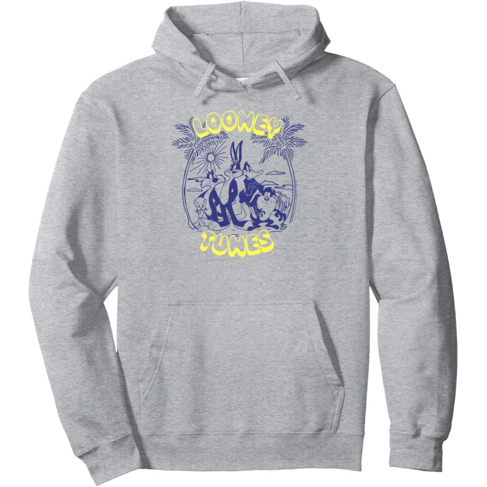 Amazon Essentials Looney Tunes Tropical Paradise Beach Scene Pullover Hoodie(Heather Grey)