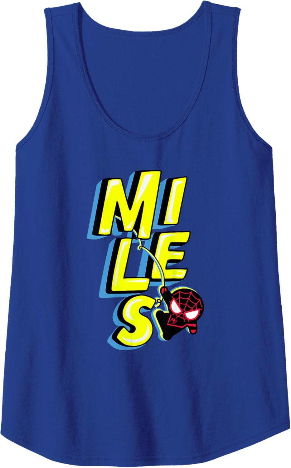 Amazon Essentials Marvel Miles Morales Spider-Man Bold Yellow Name Tank Top(Royal Blue)