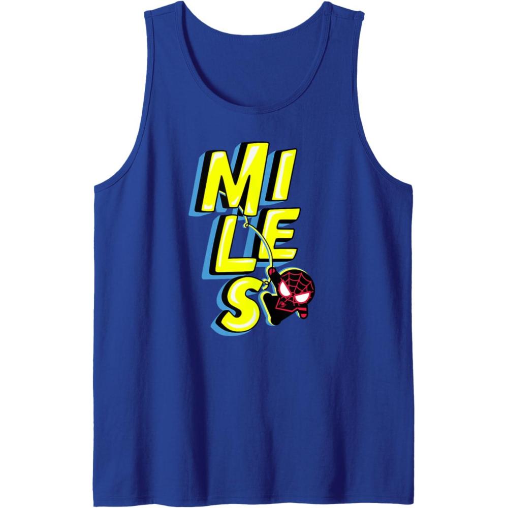 imageAmazon Essentials Marvel Miles Morales SpiderMan Bold Yellow Name Tank TopRoyal Blue