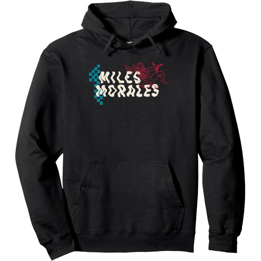 Amazon Essentials Marvel Miles Morales Spider-Man Checkerboard Collage Pullover Hoodie(Black)