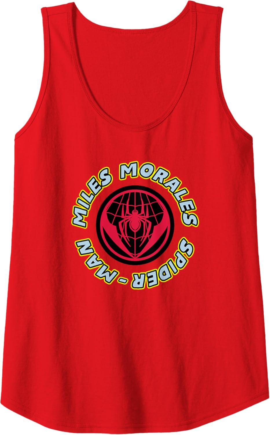 imageAmazon Essentials Marvel Miles Morales SpiderMan Circular Logo Tank TopRed