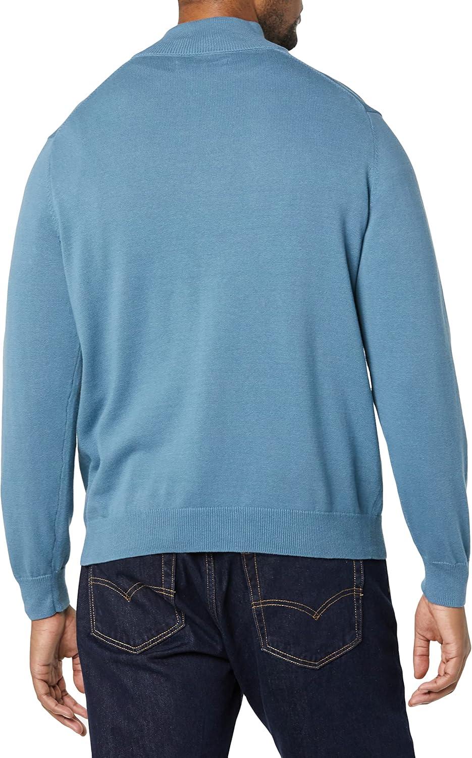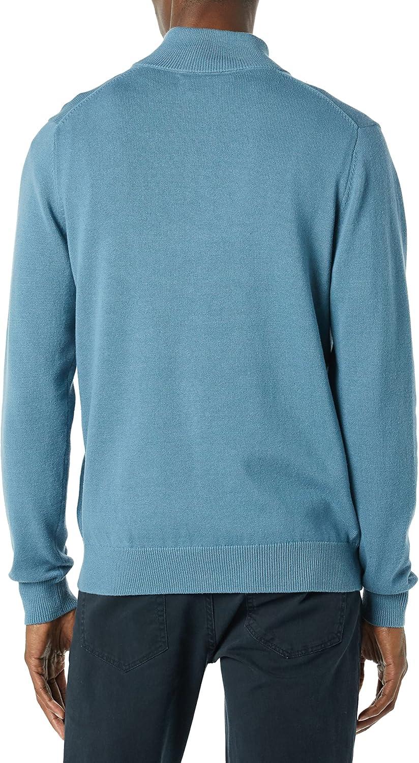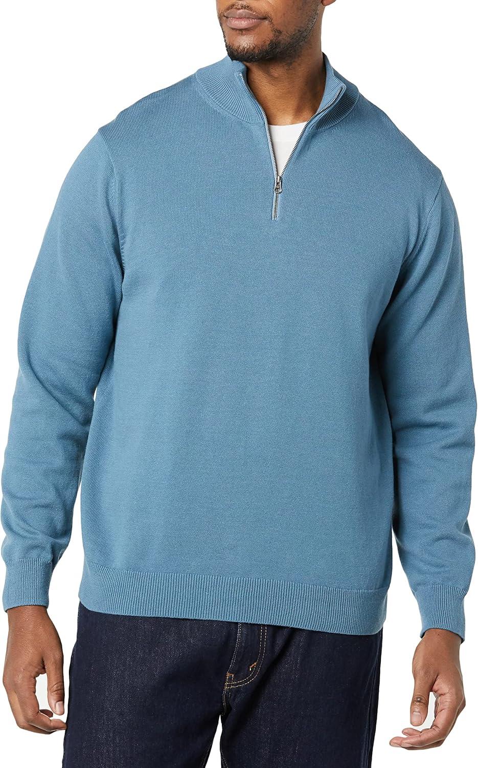 Amazon Essentials Men’s 100% Cotton Quarter-Zip Sweater(Blue)