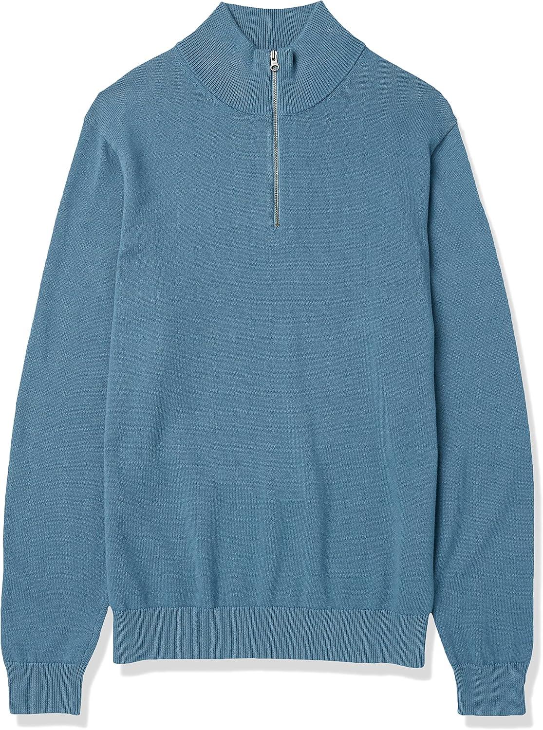 Amazon Essentials Men's 100% Cotton Quarter-Zip Sweater(Blue)