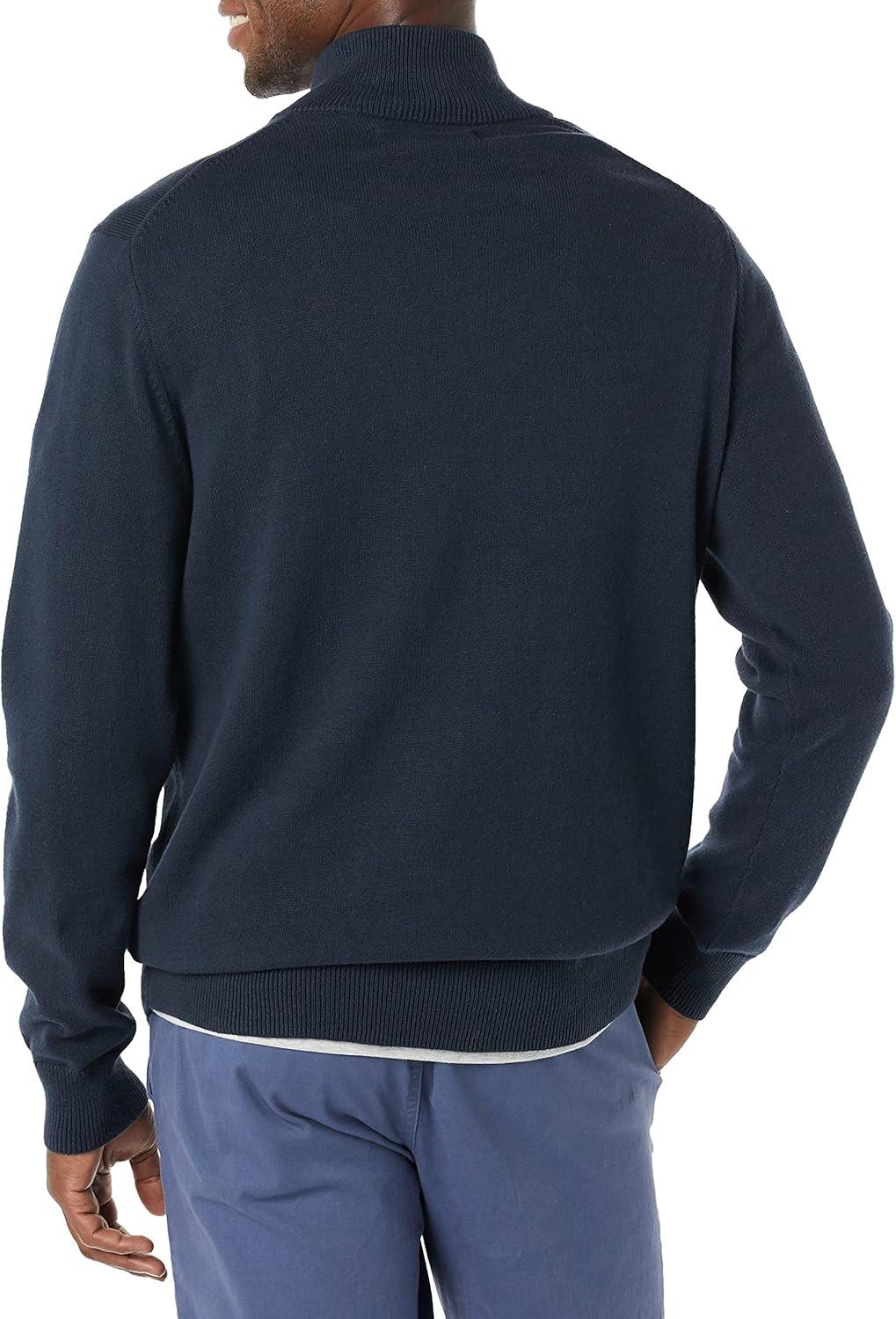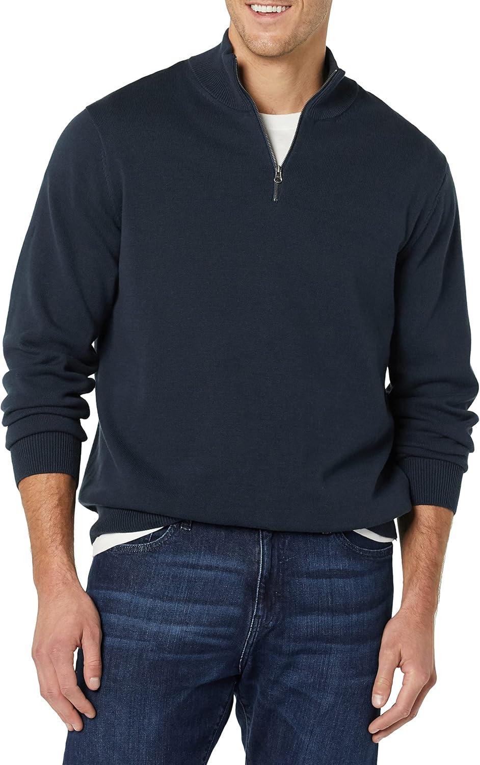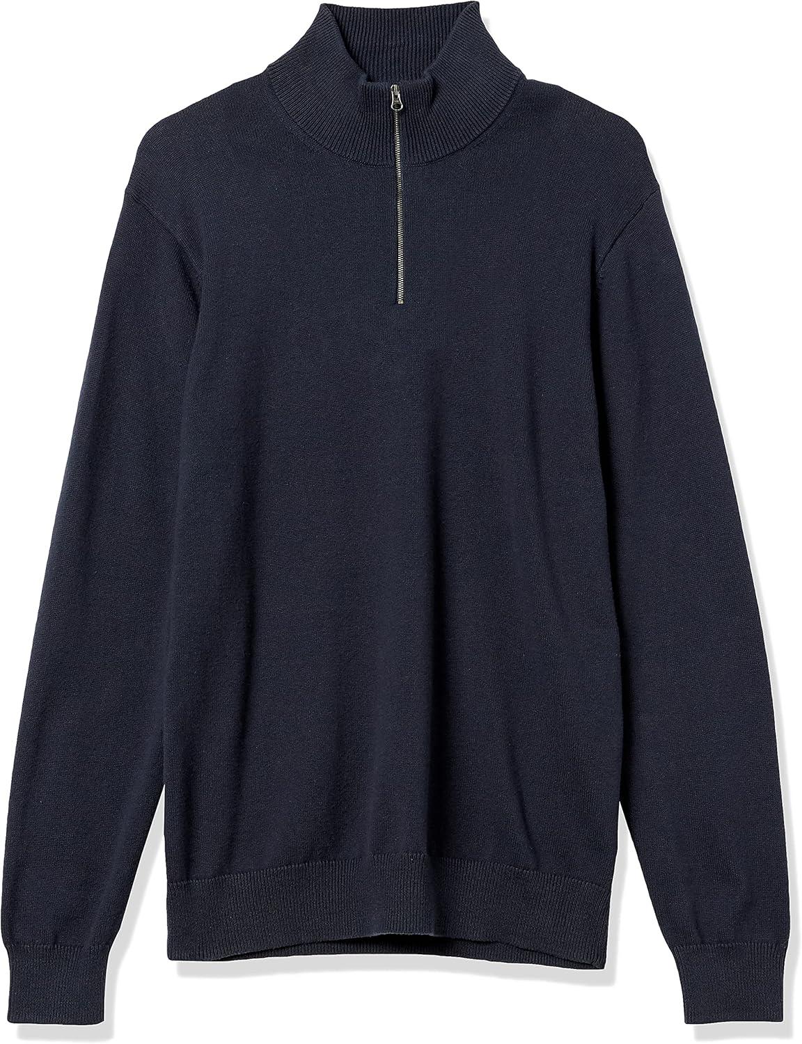 Amazon Essentials Men’s 100% Cotton Quarter-Zip Sweater(Navy)