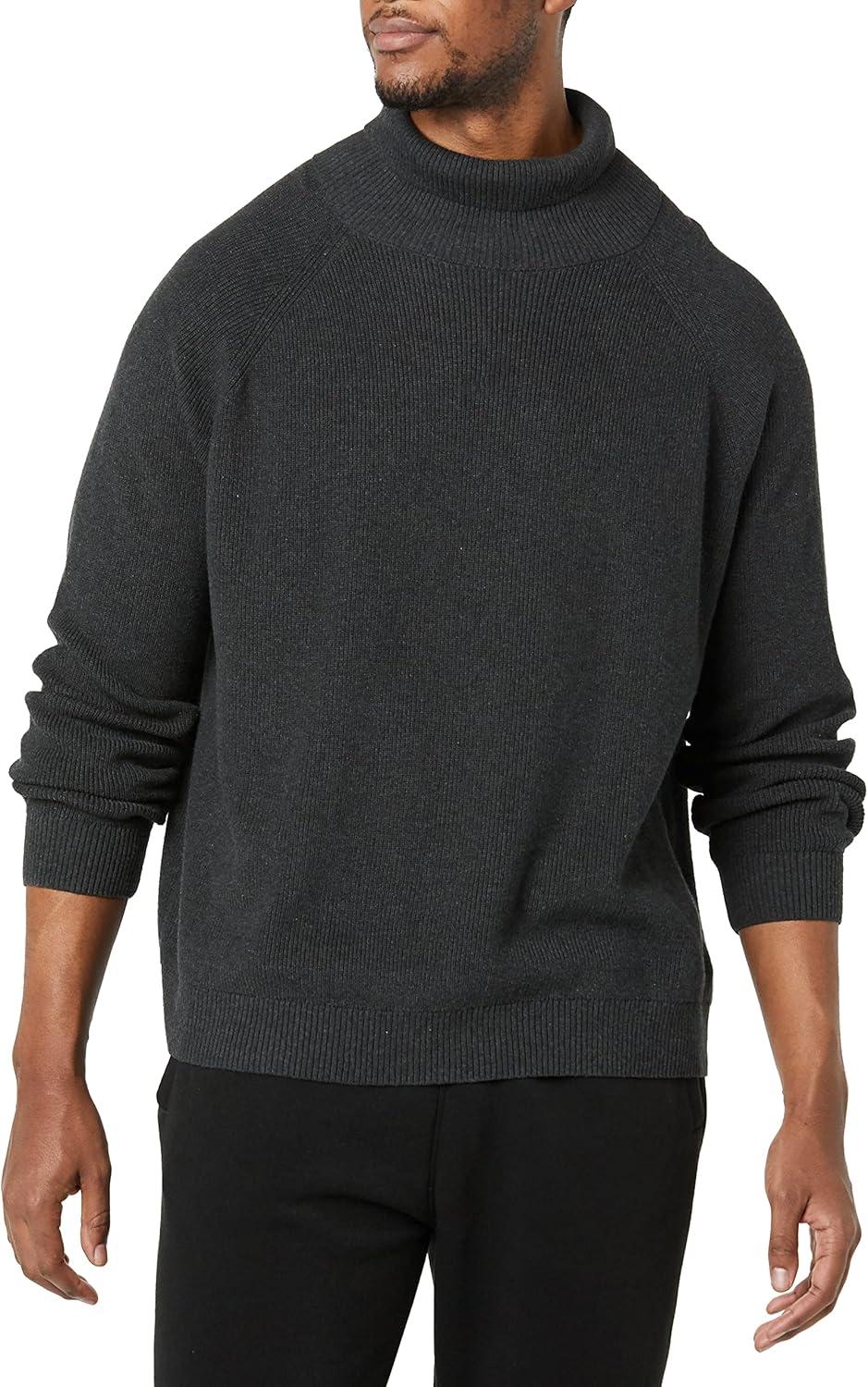 Amazon Essentials Men’s 100% Cotton Rib Knit Turtleneck Sweater(Charcoal Heather)