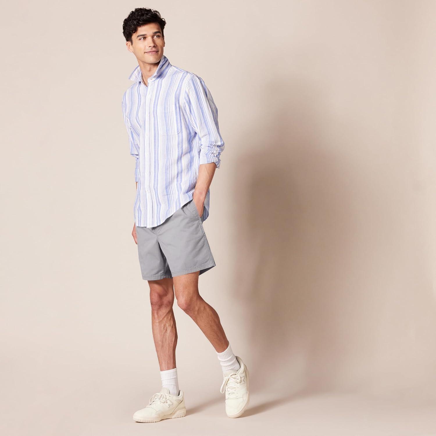 Amazon Essentials Men’s 6″ Inseam Drawstring Short(Light Wash Chambray)