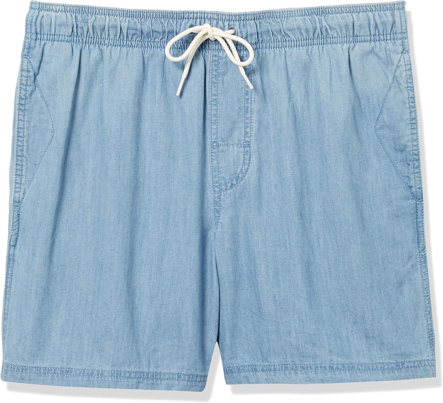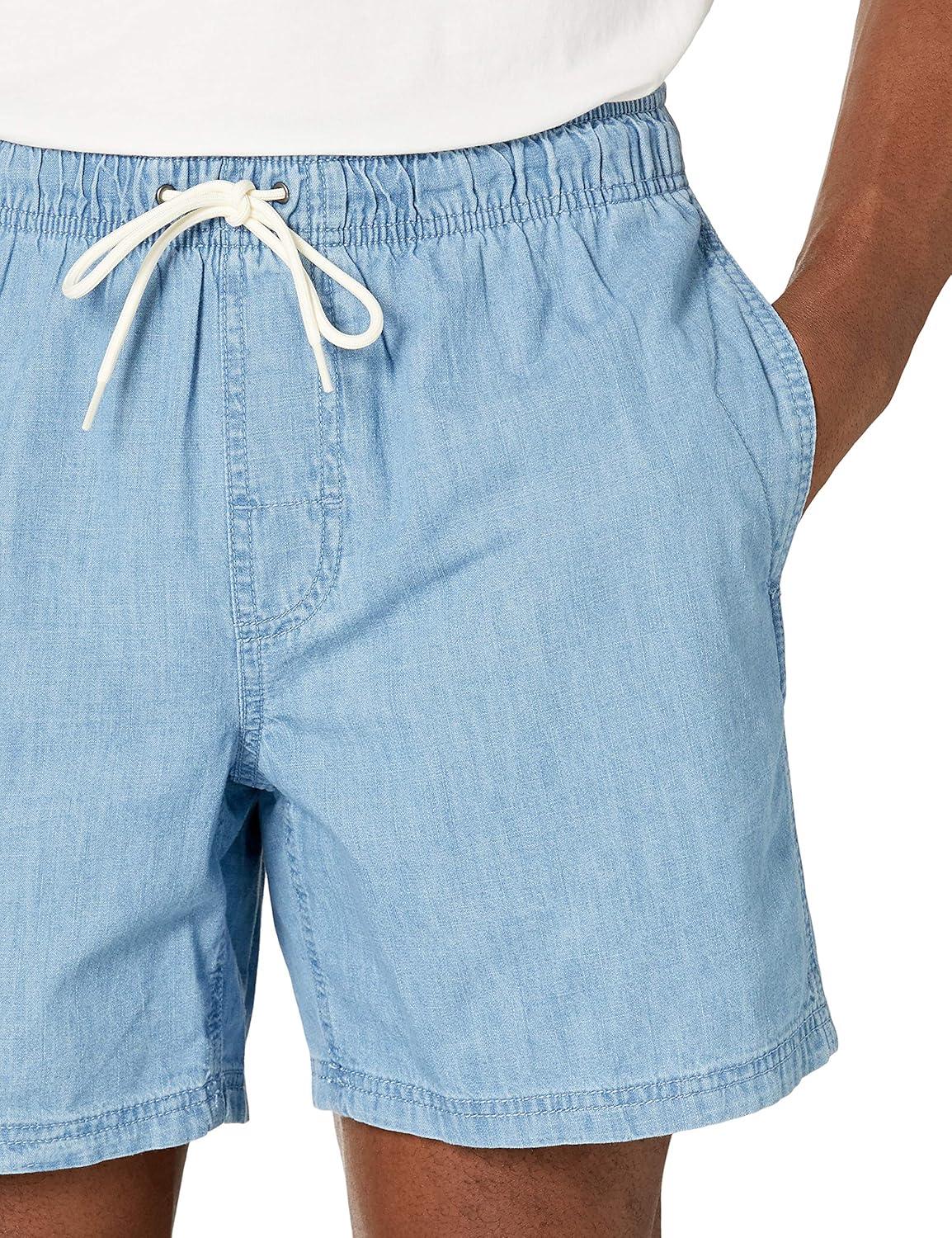 Amazon Essentials Men’s 6″ Inseam Drawstring Short(Light Wash Chambray)