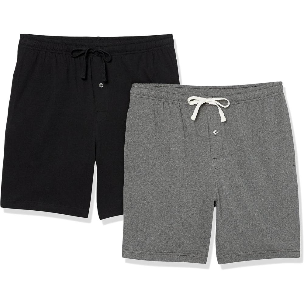 Amazon Essentials Men’s 7″ Cotton Knit Pajama Shorts, Pack of 2(Black/Charcoal Heather)