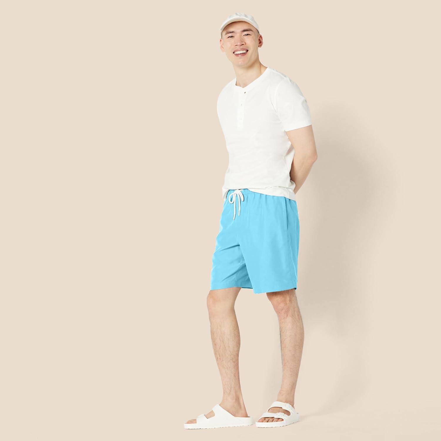 Discover the latest Amazon Essentials Men’s 9" Swim Trunks with Mesh Lining, Pockets, Drawstring Closure(Aqua Blue) from and take advantage of our limited-time introductory offer.